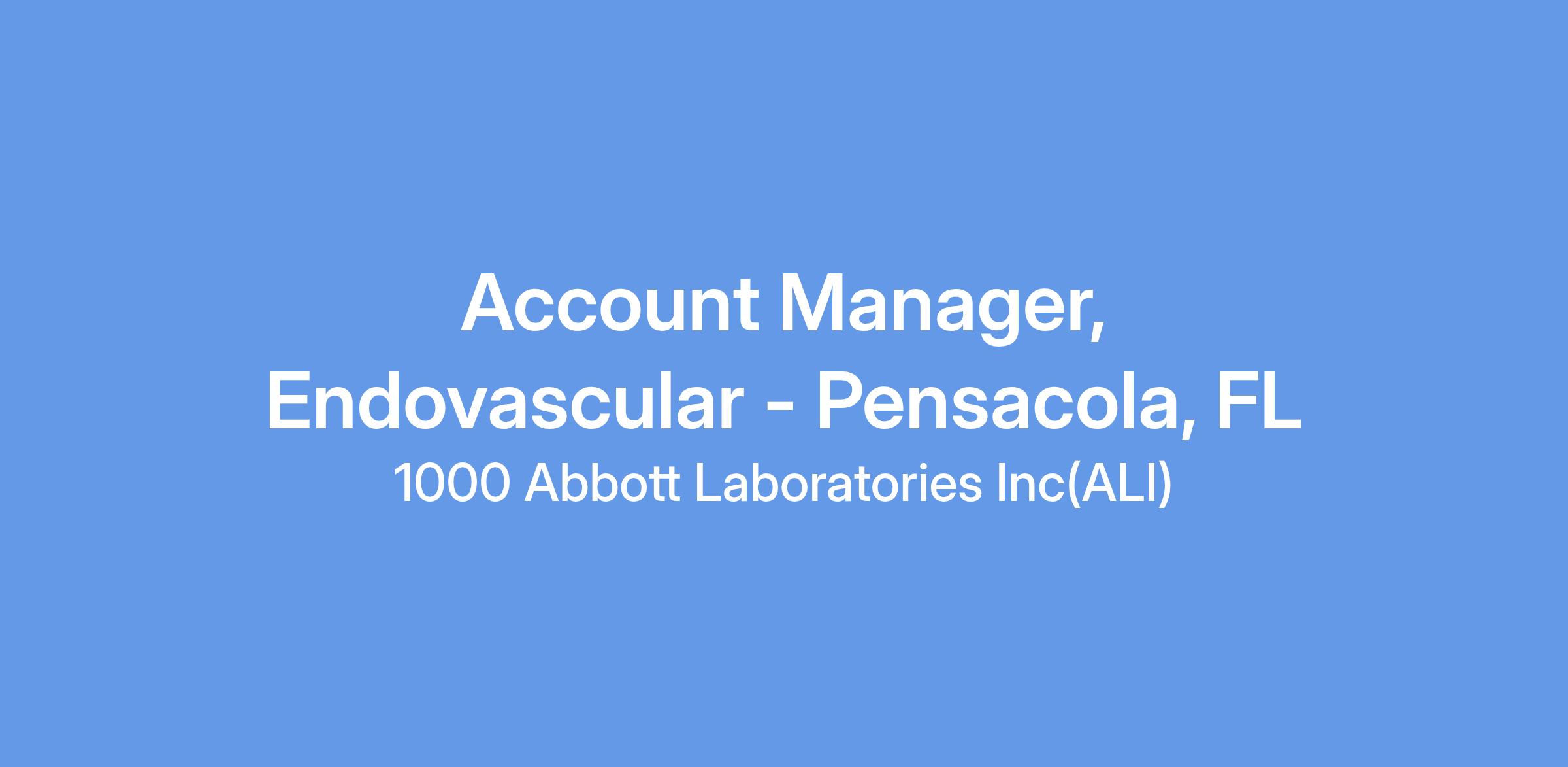 We currently have an opportunity available for an Account Manager, Endovascular - Pensacola, FL. This role will be responsible for ensuring that the assigned territory meets or exceeds sales objectives and delivers profitable growth/market share expectations aligned with the Annual Plan. The Account Manager will work with, and report to, the Regional Sales Director to identify/evaluate market opportunities, business potential, and to achieve annual sales objectives in assigned territory. This individual will coordinate activities with Clinical Specialists, negotiate contracts with hospital customers, and keep the company informed of market dynamics & competitive activity.
