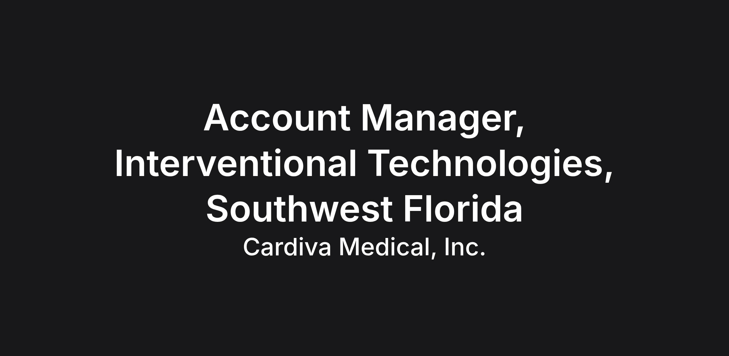 - Previous Medical Device sales experience preferably calling on Interventional Cardiologists, Vascular Surgeons, Interventional Radiologists and administrators in the targeted territory.