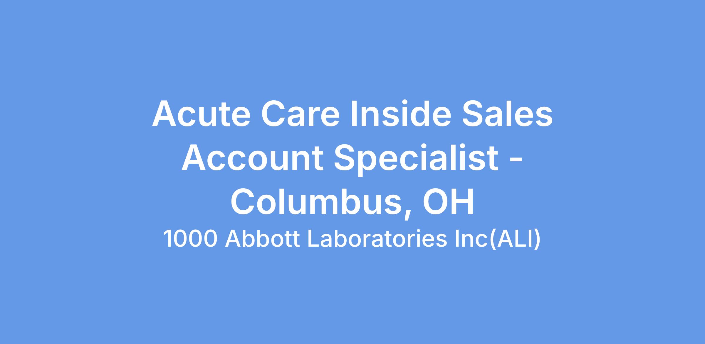 Acute Care Inside Sales Account Specialist - Therapeutic Nutrition - Columbus, OH