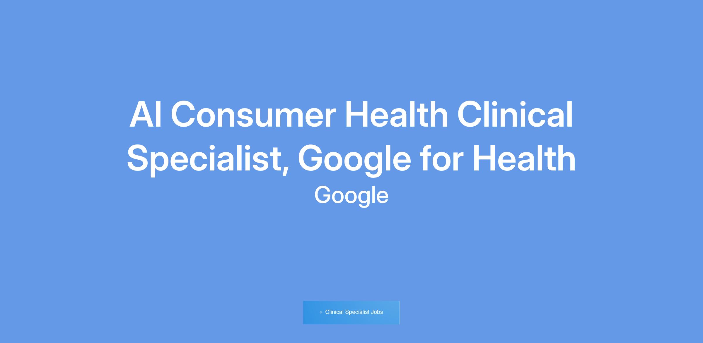 As a Clinical Specialist you will be an effective and influential contributor to our work - developing intelligent and intuitive tools that help improve the health journey for users. In this role, you will appropriately shape the content, design, and execution of products.Google for Health is a company-wide effort to help billions of people be healthier. We work toward this vision by meeting people in their everyday moments and empowering them to stay healthy and partnering with care teams to provide more accurate and accessible care. Our teams are applying our expertise and technology to improve health outcomes globally β with high-quality information and tools to help people manage their health and wellbeing, solutions to transform care delivery, research to catalyze the use of artificial intelligence for the screening and diagnosis of disease, and data and insights to the public health community.