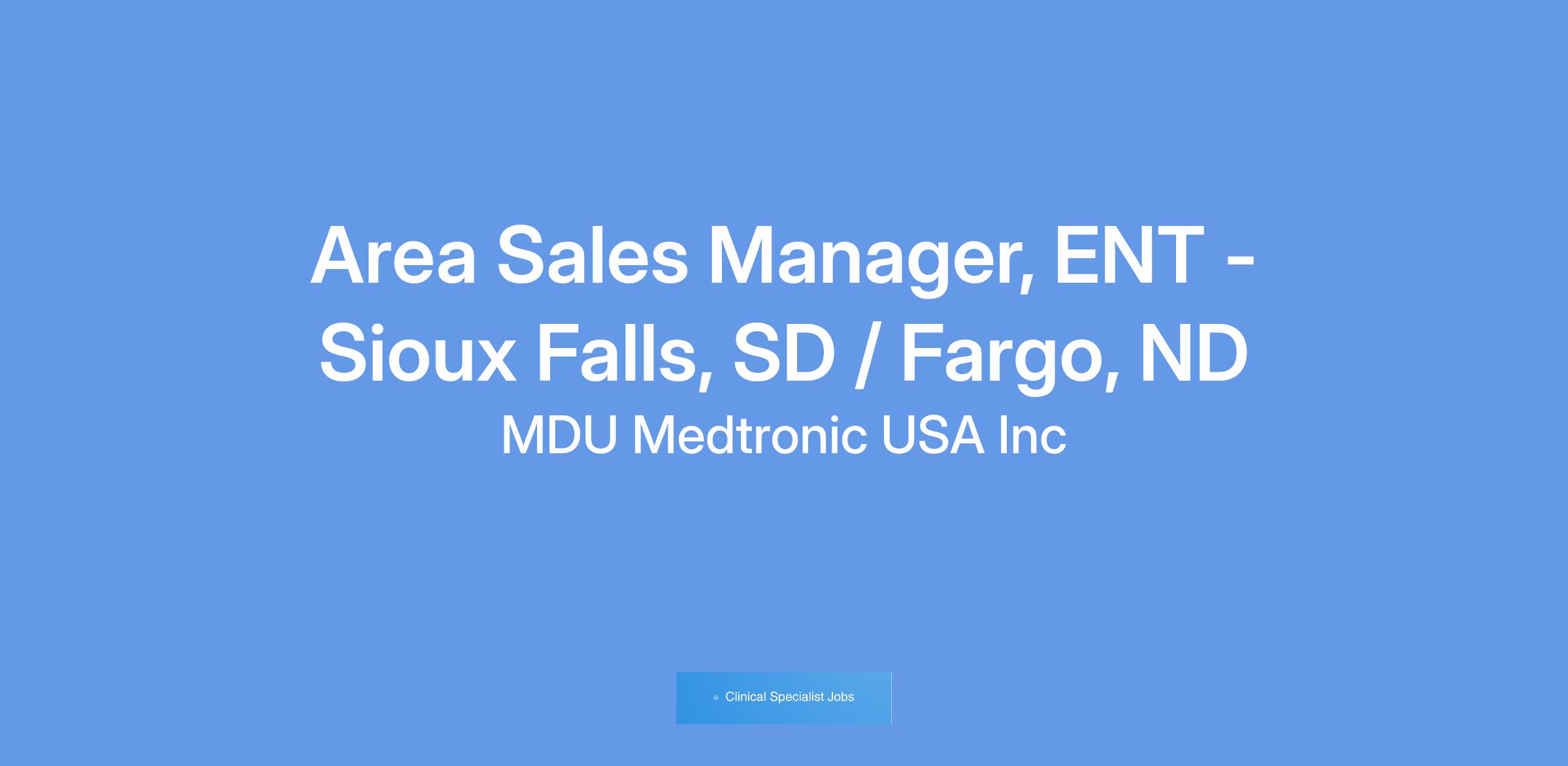 At Medtronic, the ENT Area Sales Manager has the responsibility and authority to sell all Medtronic Surgical Technologies ENT products to hospitals, physicians and other approved customers within the geographical limits of their territory to attain established quotas and sales objectives.