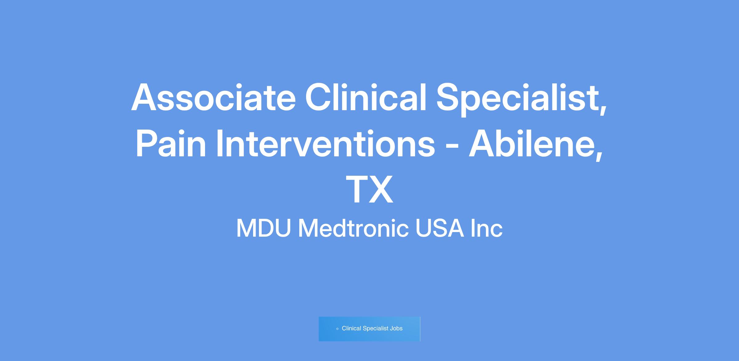 Associate Clinical Specialist, Pain Interventions - Abilene, TX