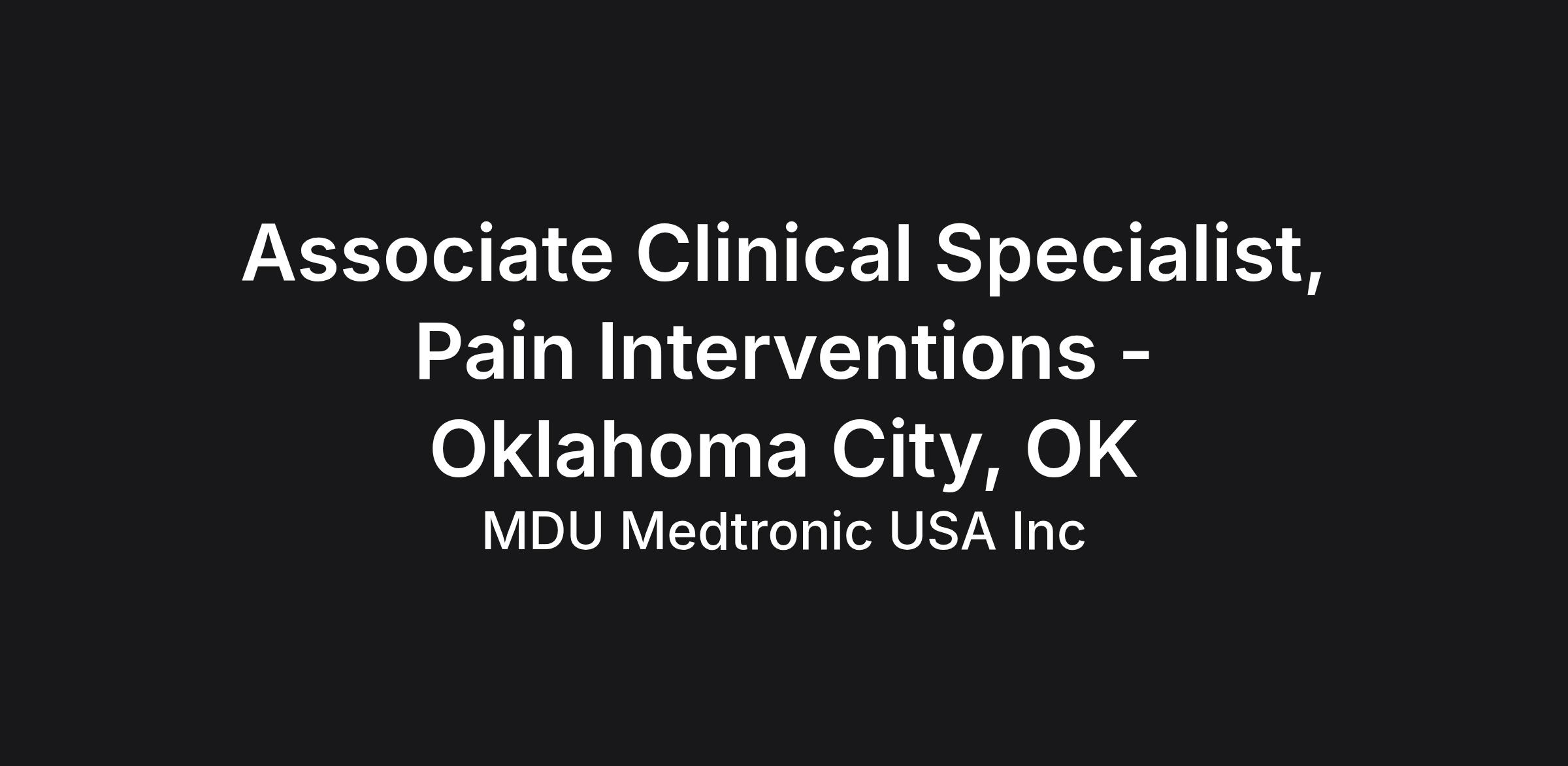 At Medtronic, the Associate Clinical Specialist, supports the Neuromodulation Pain, Target Drug Delivery and Interventional Therapies in the areas of surgical coverage, follow-up support, troubleshooting, customer service and education. This person will be engaged in basic market development activities depending upon the needs of the assigned territory and district.