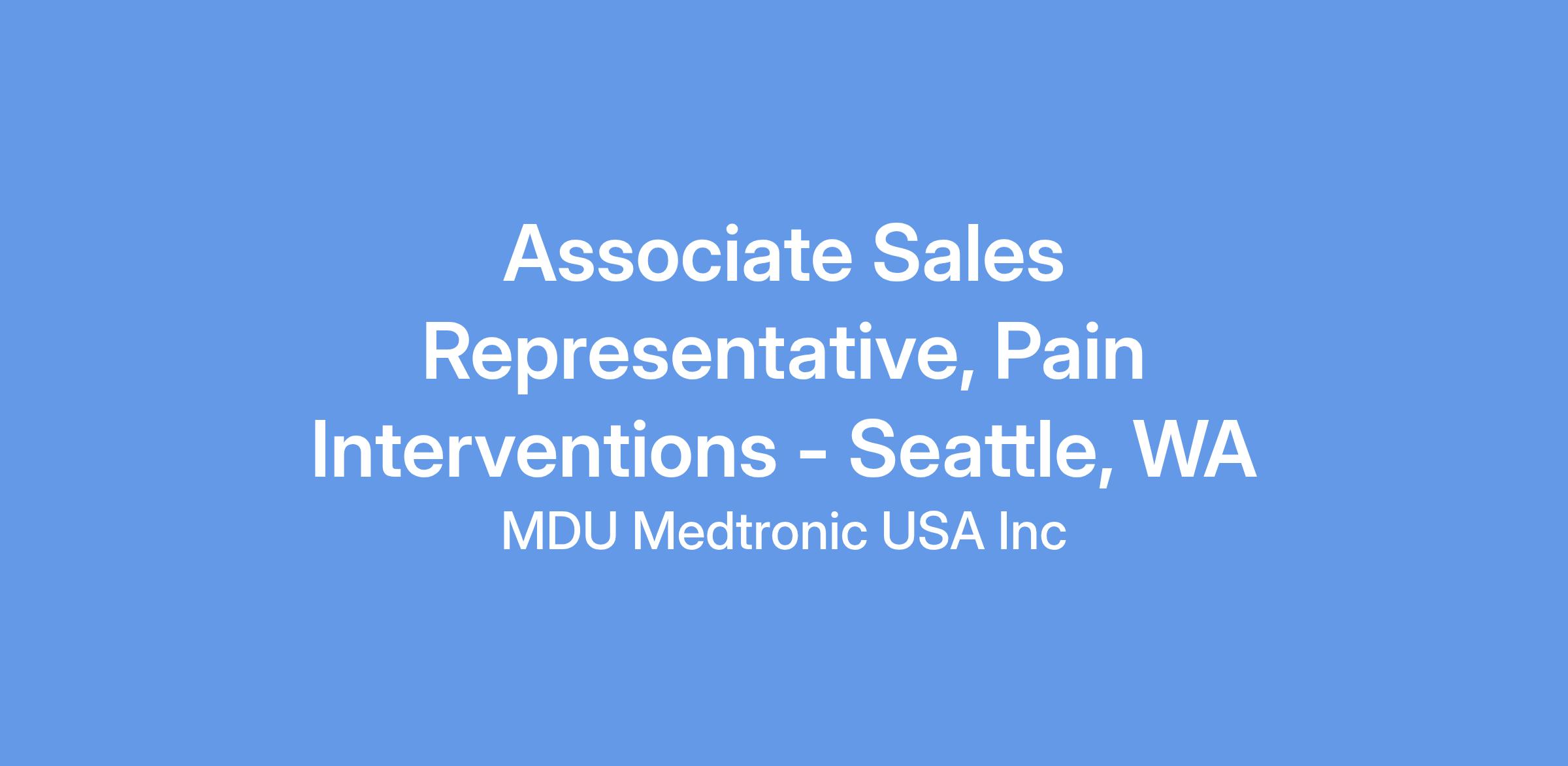 At Medtronic, the Associate Sales Representative, Pain Interventions is an entry level role that will provide an opportunity to become a clinical and technical expert on Pain Interventional Therapies. This role will assist with managing and growing a territory base business by initiating, supporting and developing key referral networks and strategic implanting centers. In certain geographies, under direction, will be responsible for market development networks and will be the account relationship contact for assigned territory’s customer needs including account level reimbursement responsibility. The Associate Sales Representative will have responsibilities for the growth of market share and revenue within an assigned geography. In addition, this role will also coordinate support activities and development of sales partnerships with distribution alliances. This role reports directly to a District Sales Manager, supports other Sales Representative peers and partners with a Clinical Specialist team.