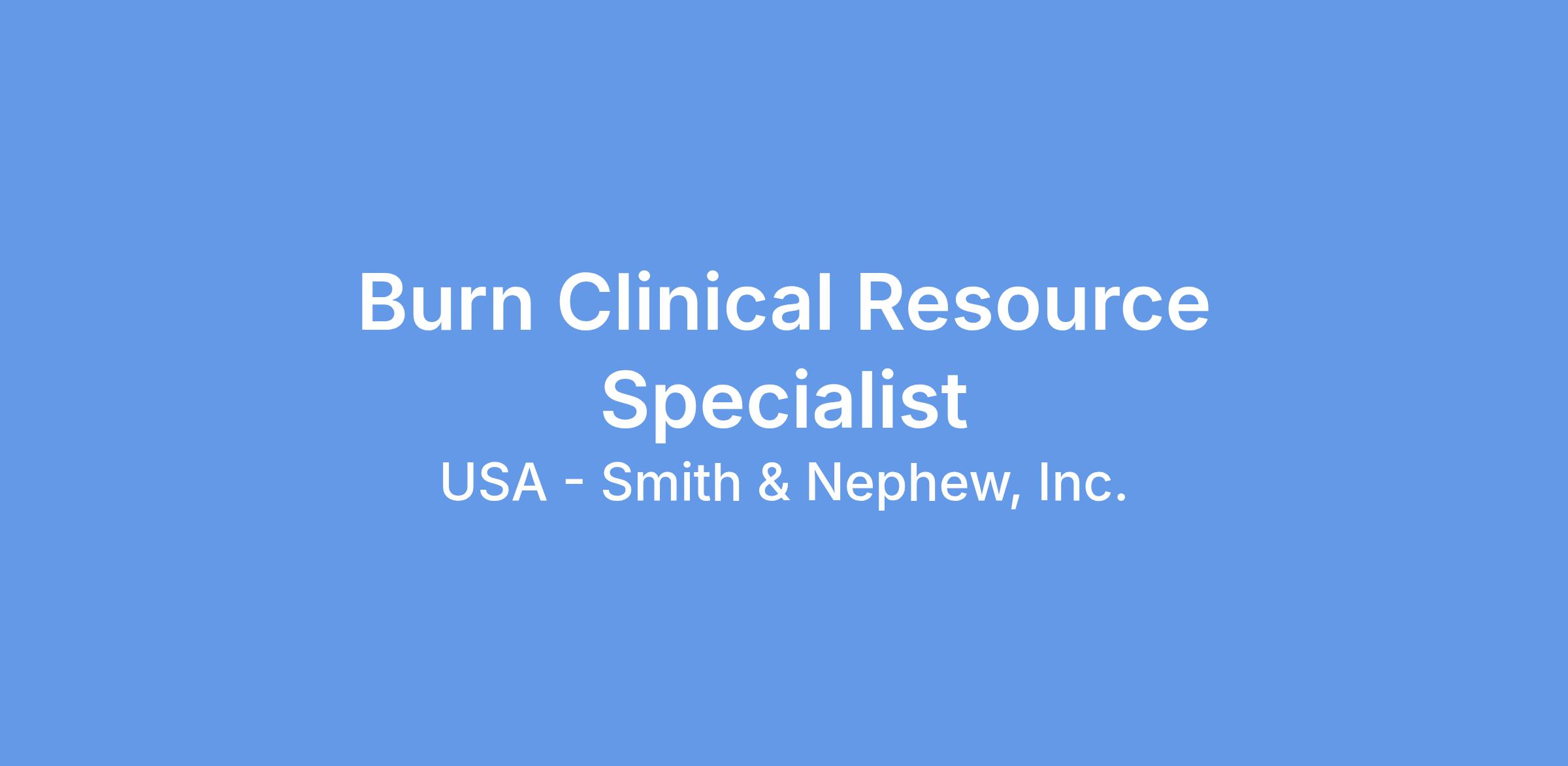 The Clinical Resource Specialist for Burn (CRS-B) is a field-based clinical position requiring a strong clinical background in Burn care. The CRS-B will deliver clinical education to practicing clinicians and key thought leaders within the Burn community. Primary product focus will be on the core group of SANTYL, ACTICOAT, VERSAJET, OASIS, and BIOBRANE with the primary call point in Burn Units, Pharmacy, and the OR. They will be responsible for the coordination and implementation of educational and clinical initiatives that support business objectives for targeted accounts/geographies. Works in collaboration with the Burn Sales Team & the Burn Medical Education Manager to ensure a coordinated effort in meeting sales and clinical education objectives. The CRS-B applies experience to form relationships with key clinical and economic decision makers to drive adoption of focus products and influence sales. The CRS-B will work to deliver Smith+Nephew (S+N) branded programs, to provide customer facing clinical resources, and product based clinical education, within the burn care setting. The CRS-B acts within the scope of corporate objectives and policies to accomplish goals.