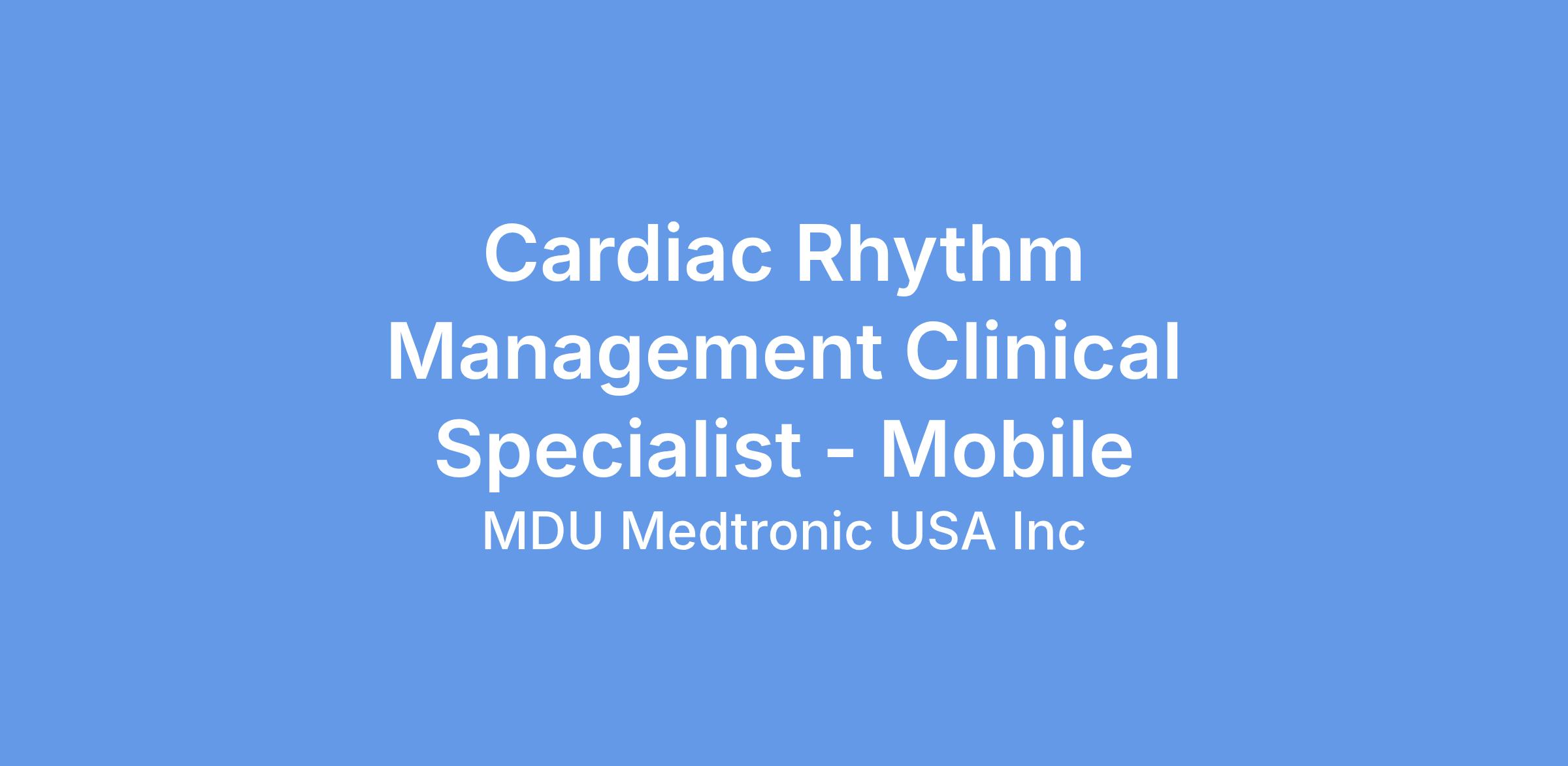 To find all Cardiac Rhythm Management Clinical Specialist roles available please use #crmcs in the key word search at https://www.medtronic.com/en-us/our-company/careers.html