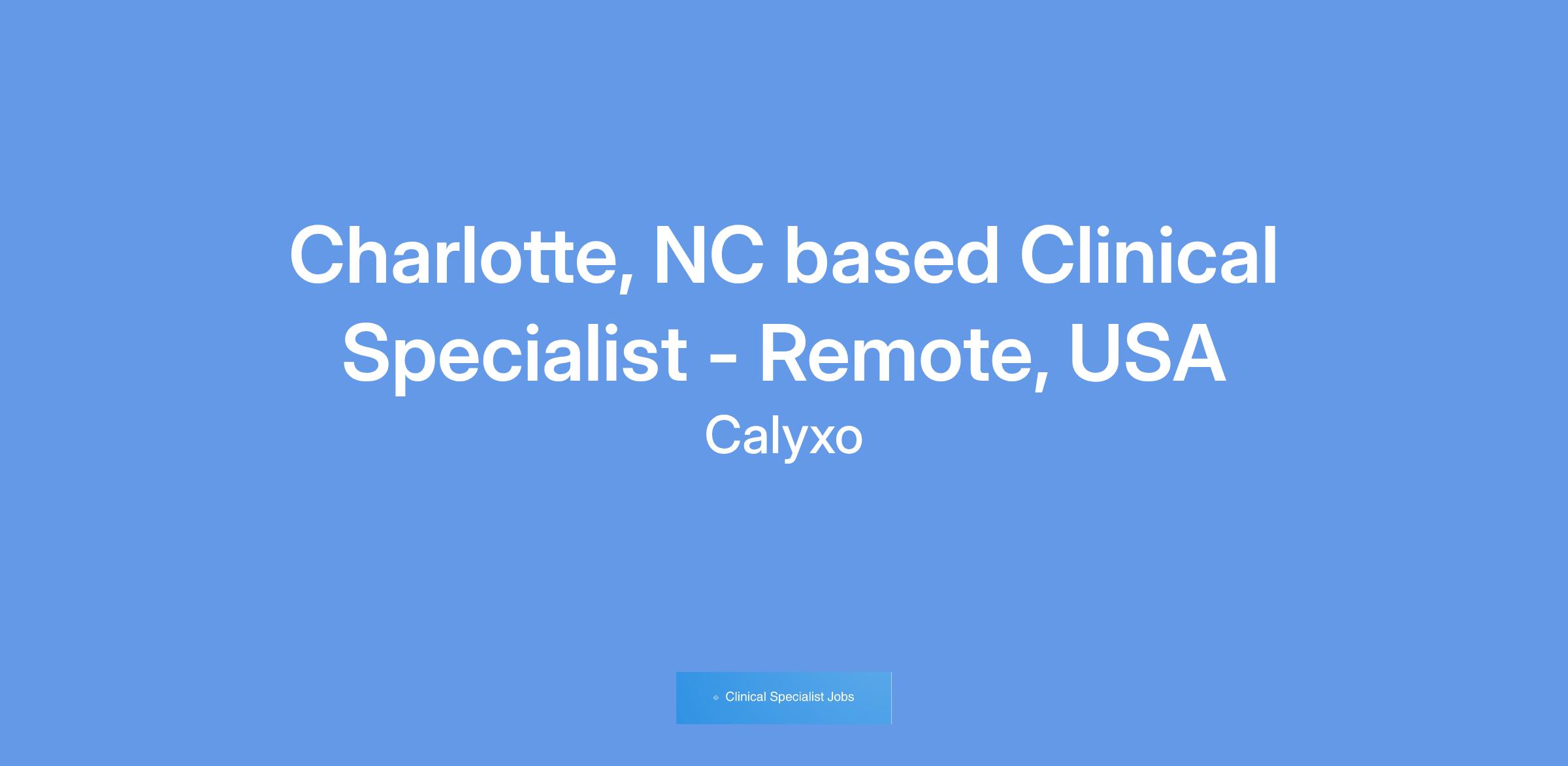 Charlotte, NC based Clinical Specialist - Remote, USA