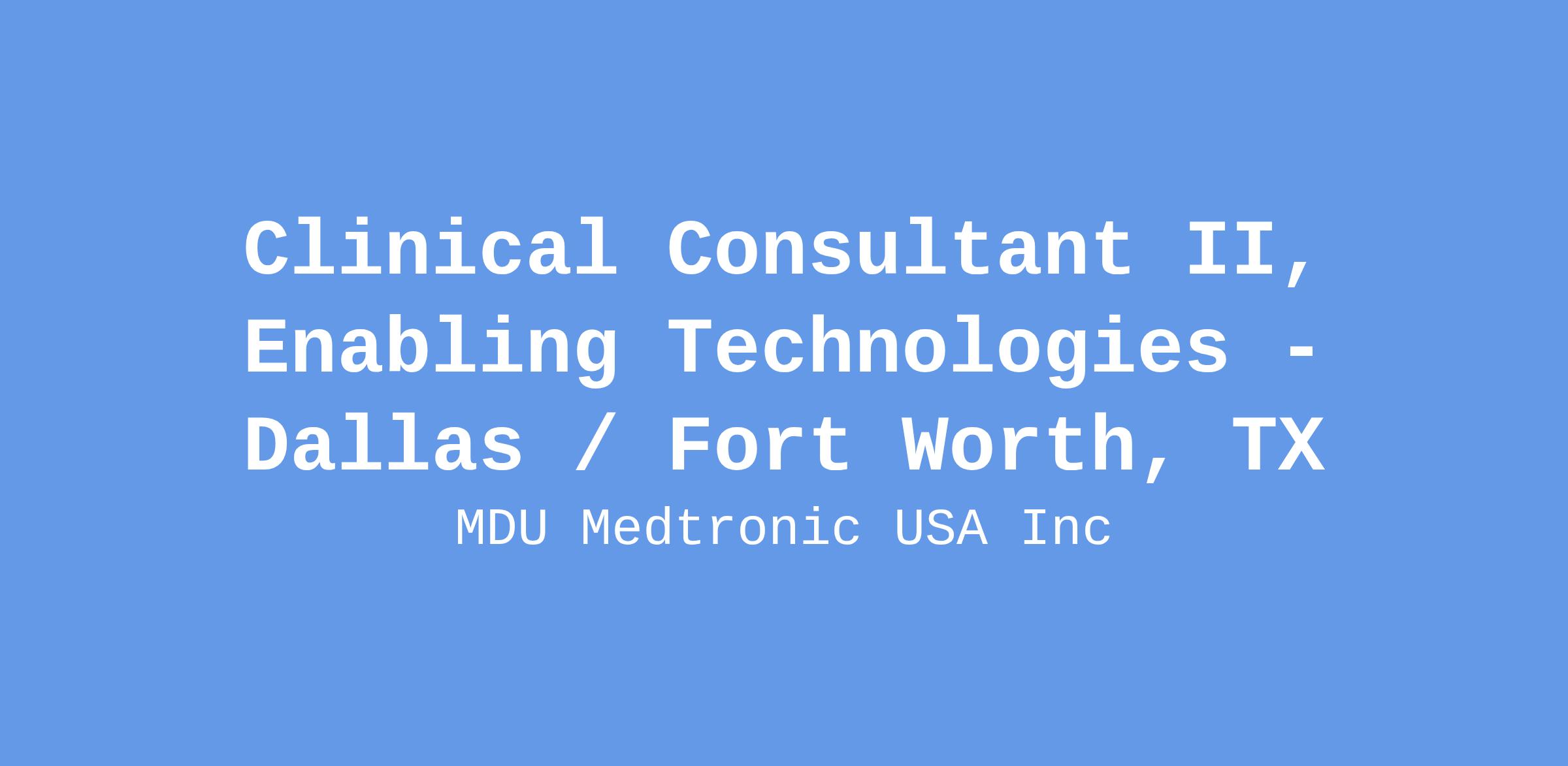 At Medtronic, the Clinical Consultant II, Enabling Technologies provides clinical, technical and product knowledge support to existing and potential customers. Builds and maintains solid customer relationships and provides customer training at all levels. Is responsible for key customer reports as required to support Medtronic NeuroSurgery/Navigation/Robotic Assisted Surgery products and services. Must perform all duties within the Quality System and BCS requirements.