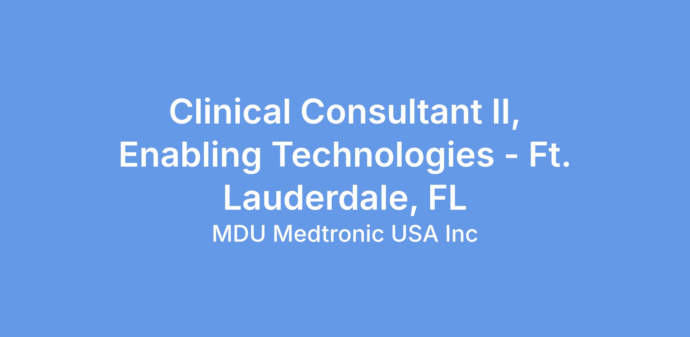 Clinical Consultant II, Enabling Technologies - Ft. Lauderdale, FL