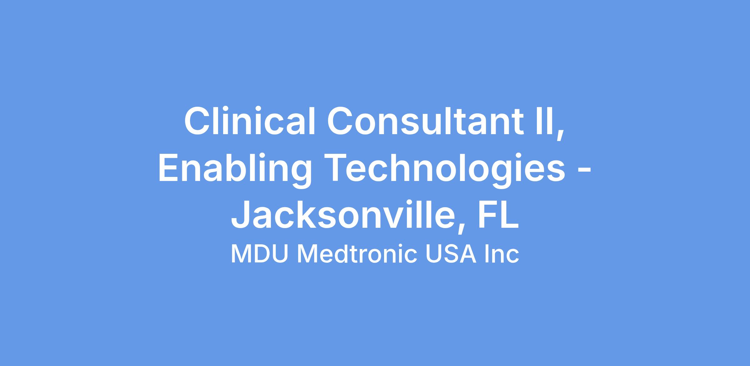 At Medtronic, the Clinical Consultant II, Enabling Technologies provides clinical, technical and product knowledge support to existing and potential customers. Builds and maintains solid customer relationships and provides customer training at all levels. Is responsible for key customer reports as required to support Medtronic Neurosurgery / Navigation/Robotic Assisted Surgery products and services. Must perform all duties within the Quality System and BCS requirements.