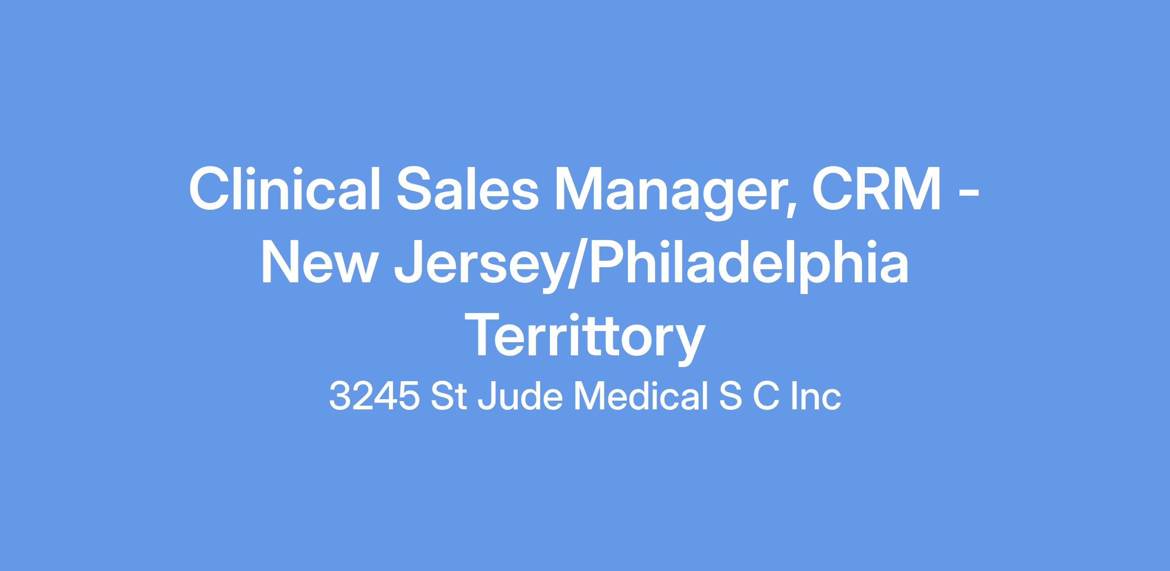 The Clinical Sales Manager position is a field-based position supporting Northern New Jersey and Philadelphia territory in the Cardiac Rhythm Management division. As a global leader in Cardiac Rhythm Technologies, we focus on innovative technologies that can improve the way doctors treat people with heart arrhythmias or irregular heartbeats.