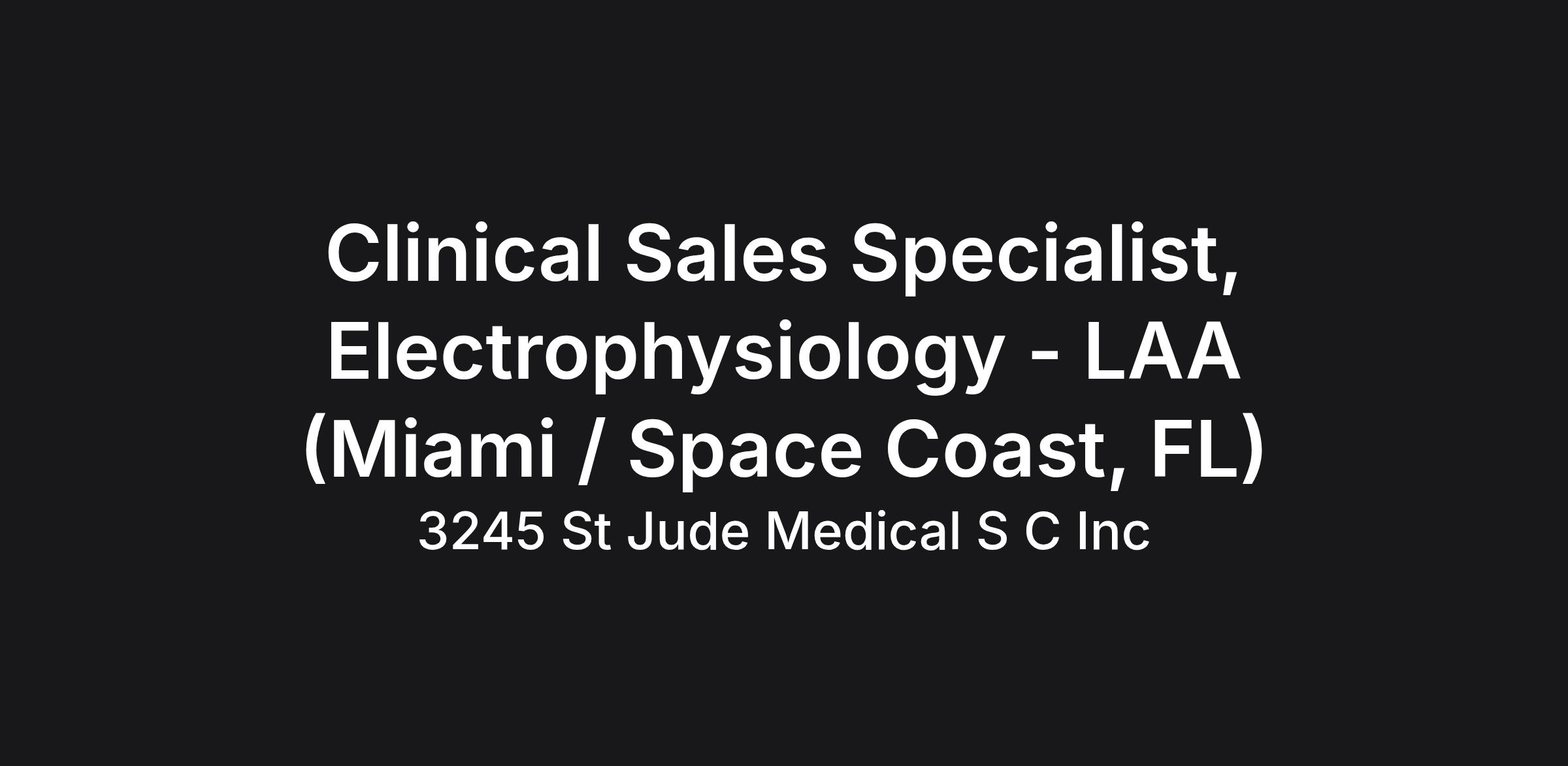 Clinical Sales Specialist, Electrophysiology - LAA (Miami / Space Coast, FL)
