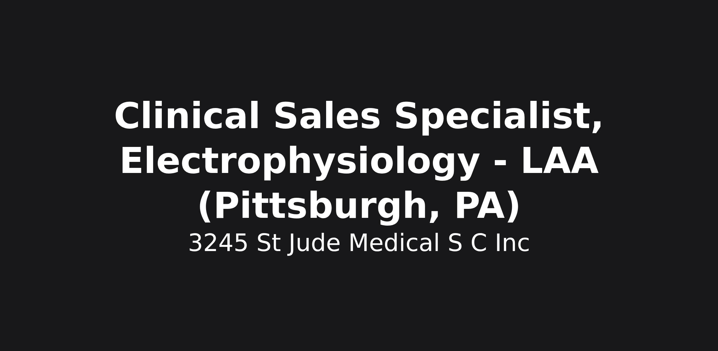 Clinical Sales Specialist, Electrophysiology - LAA (Pittsburgh, PA)