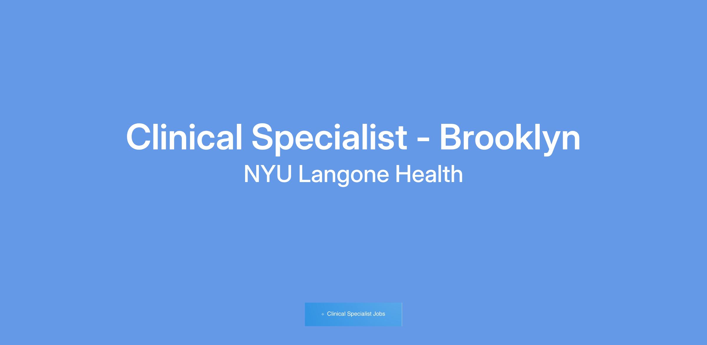 We have an exciting opportunity to join our team as a Clinical Specialist - Brooklyn.
