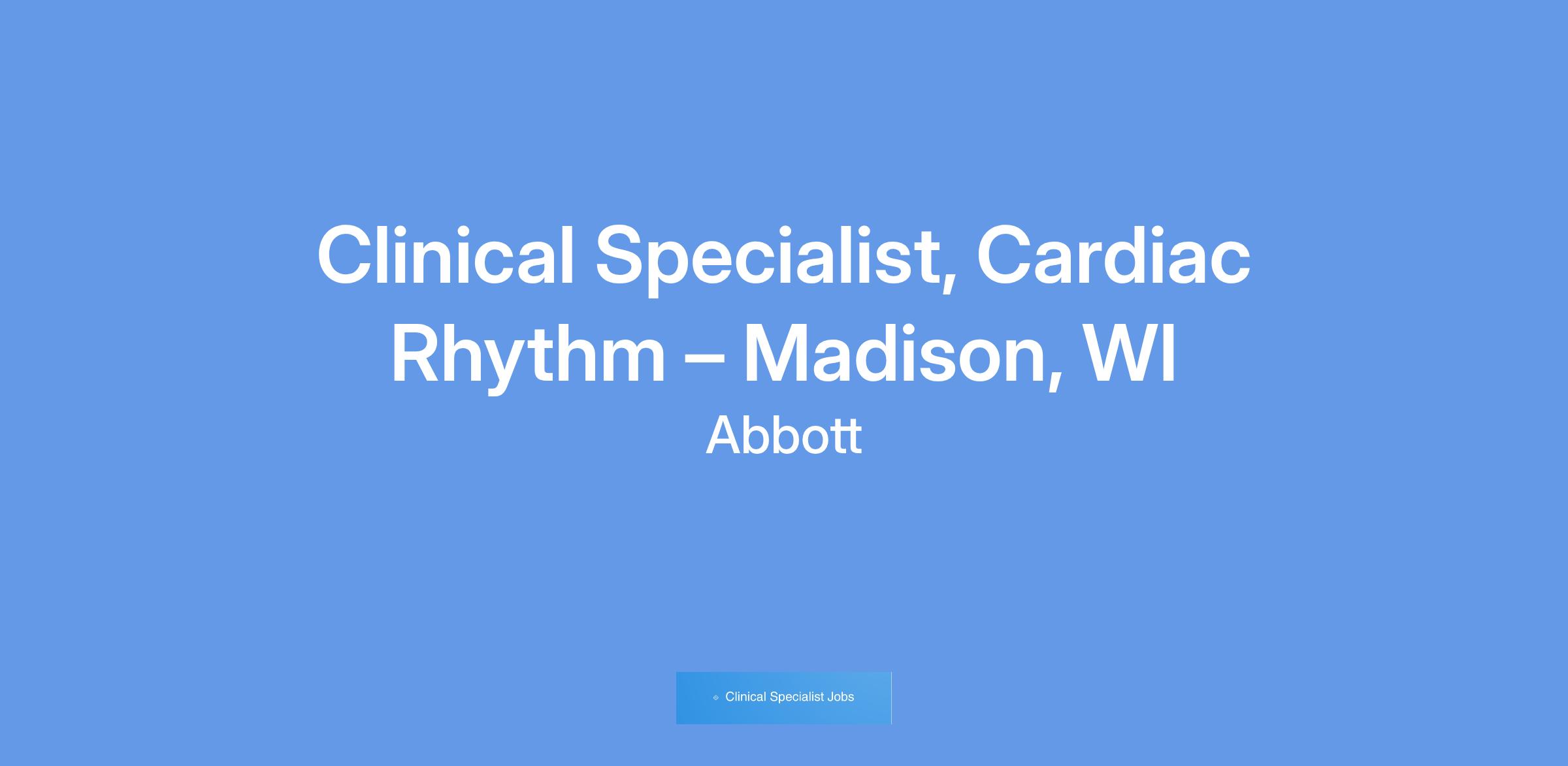 This position is a field-based position based in Madison, WI in the Cardiac Rhythm Management division. As a global leader in Cardiac Rhythm Technologies, we focus on innovative technologies that can improve the way doctors treat people with heart arrhythmias or irregular heartbeats.