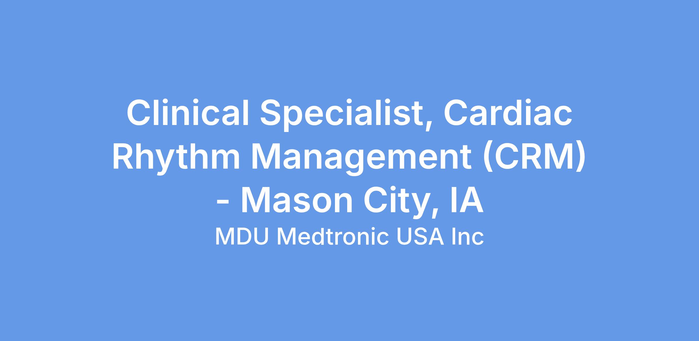 To find all Cardiac Rhythm Management Clinical Specialist roles available please use #crmcs in the key word search at jobs.medtronic.com.