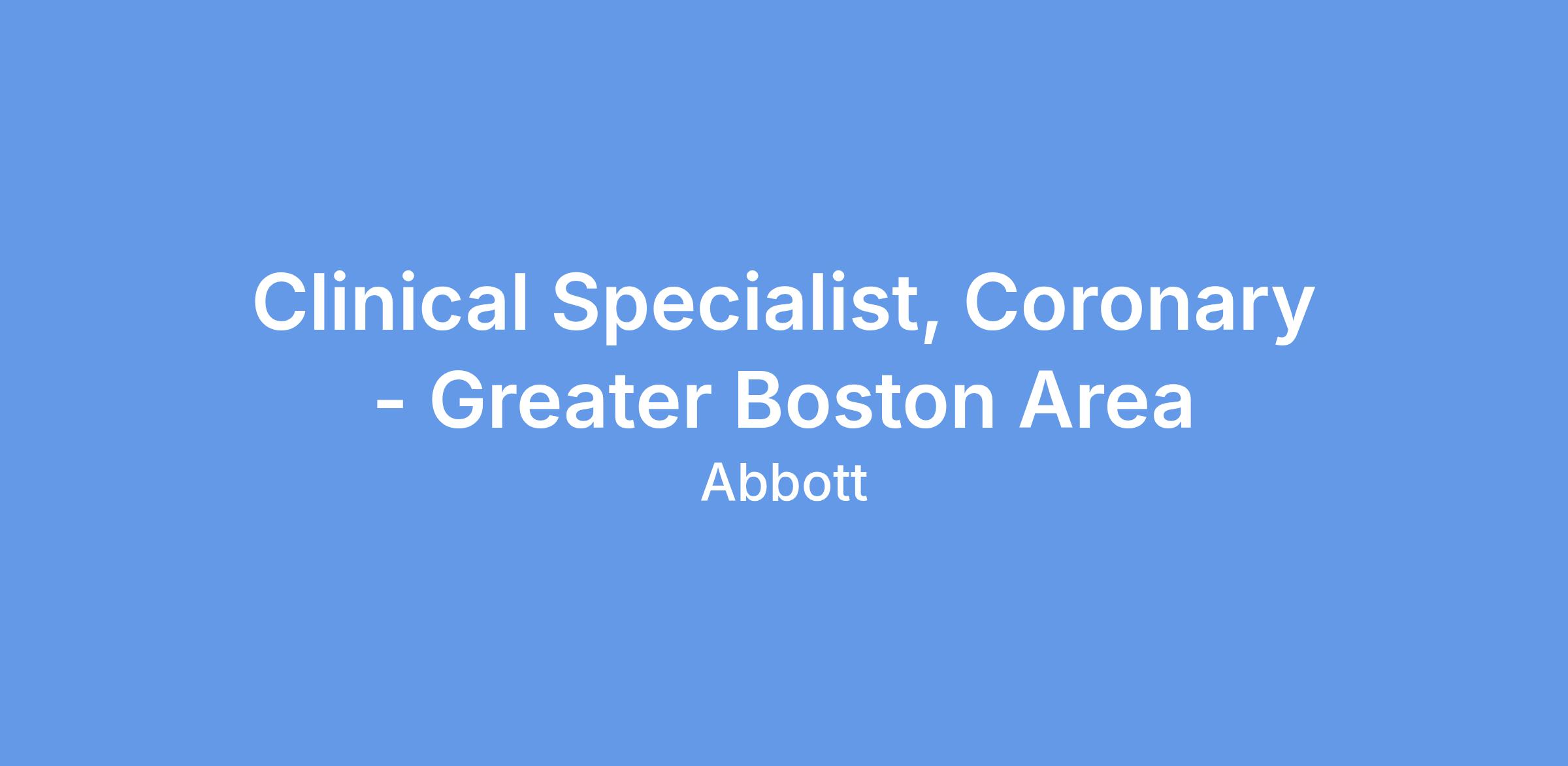 We currently have an opportunity for a Clinical Specialist, Coronary, in the greater Boston Area. The Clinical Specialist will primarily be responsible for case planning, case support coverage, and product pull- through throughout the designated territory, and throughout the Region as needed. The Clinical Specialist will promote Vascular products through education, service and training of customers in the hospital setting. The Clinical Specialist will provide clinical education and sales support in order to assist in achieving projected sales goals, increasing sales revenues within assigned product lines, and increasing market share. This position will have a heavy focus on Vessel Closure.