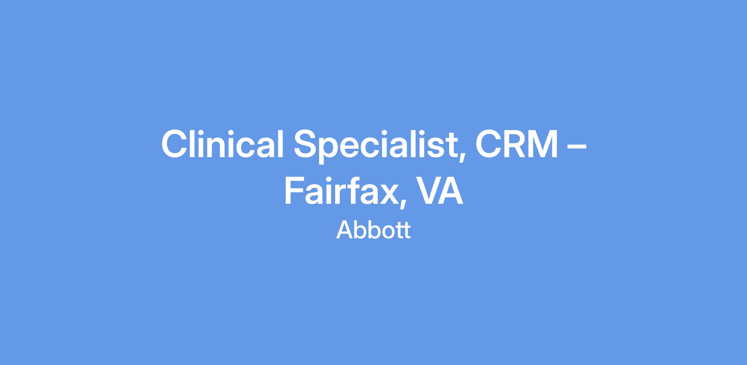 This position is a field-based position based in Fairfax, VA. in the Cardiac Rhythm Management division. As a global leader in Cardiac Rhythm Technologies, we focus on innovative technologies that can improve the way doctors treat people with heart arrhythmias or irregular heartbeats.