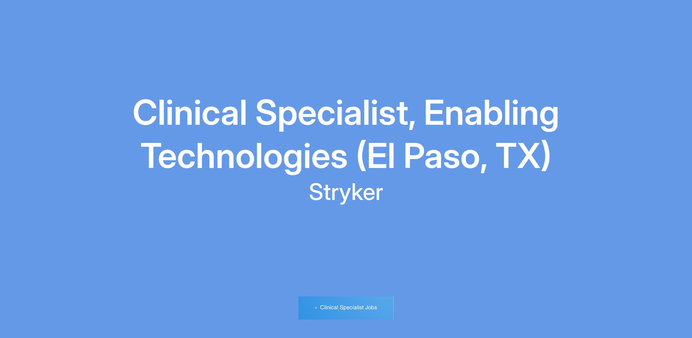 The Clinical Specialist with Stryker Spine's Enabling Technologies will provide clinical product support to all end users and provide on-site guidance and assistance during surgical procedures.