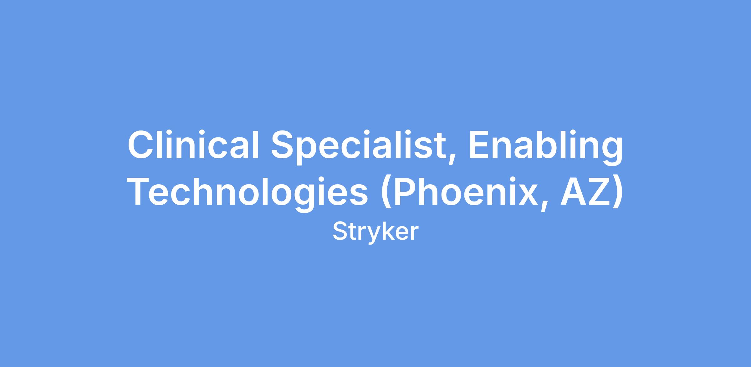 As the Clinical Specialist with Stryker Enabling Technologies you will provide clinical product support to hospital staff and provide on-site guidance and assistance during surgical procedures.