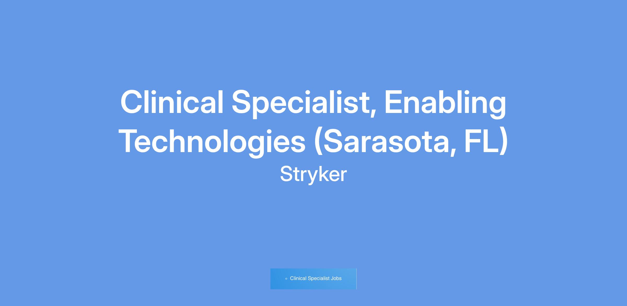 The Clinical Specialist with Stryker's Spine Enabling Technologies will provide clinical product support to all end users and provide on-site guidance and assistance during surgical procedures.
