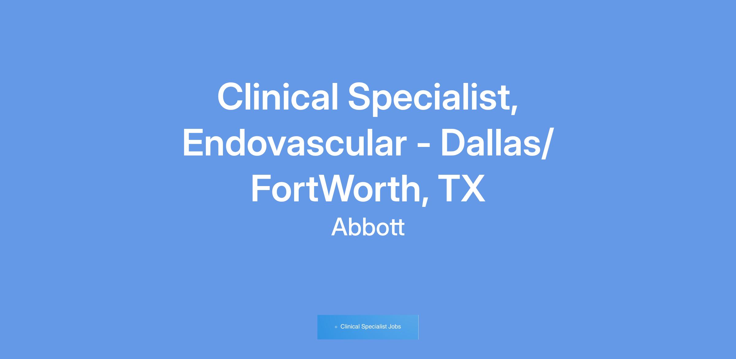 We currently have an opportunity for a Clinical Specialist - Endovascular, in Dallas/ Fort Worth- TX area. The Clinical Specialist will primarily be responsible for case planning, case support coverage, and product pull- through throughout the designated territory, and throughout the Region as needed. The Clinical Specialist will promote Vascular products through education, service and training of customers in the hospital setting. The Clinical Specialist will provide clinical education and sales support in order to assist in achieving projected sales goals, increasing sales revenues within assigned product lines, and increasing market share. This position will have a heavy focus on Vessel Closure.