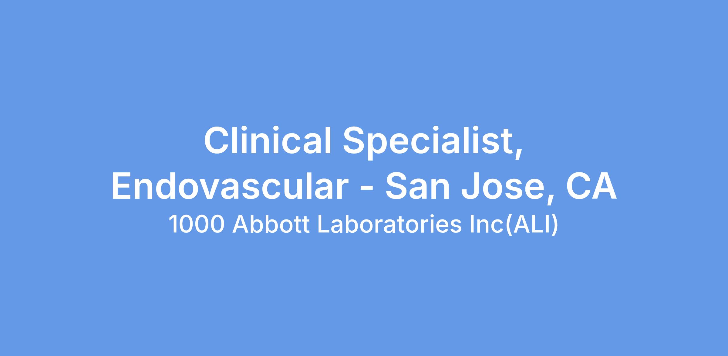We currently have an opportunity for a Clinical Specialist, Endovascular, in San Jose, CA. The Clinical Specialist will primarily be responsible for case planning, case support coverage, and product pull- through throughout the designated territory, and throughout the Region as needed. The Clinical Specialist will promote Vascular products through education, service and training of customers in the hospital setting. The Clinical Specialist will provide clinical education and sales support in order to assist in achieving projected sales goals, increasing sales revenues within assigned product lines, and increasing market share. This position will have a heavy focus on Vessel Closure.
