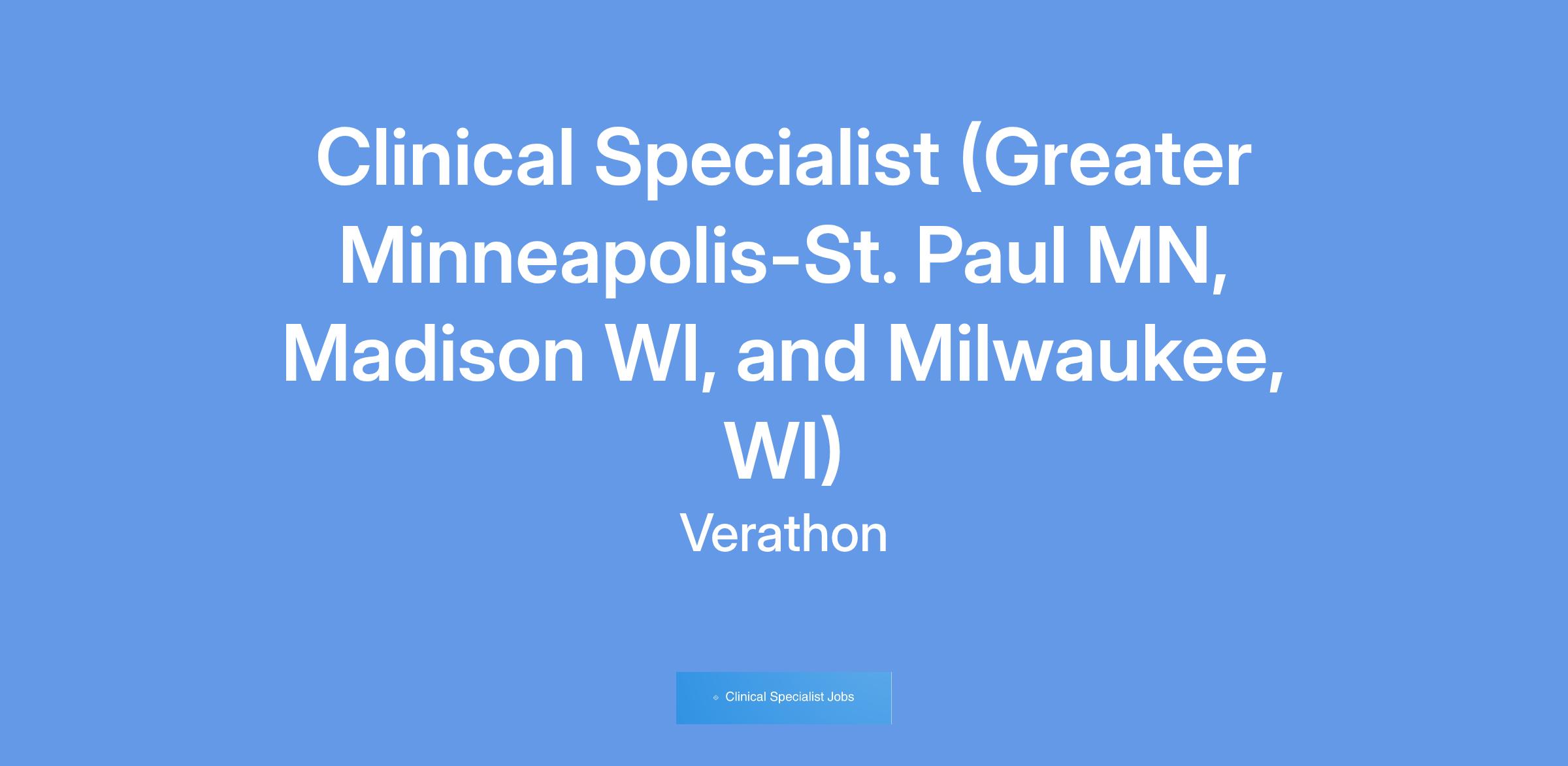 Clinical Specialist (Greater Minneapolis-St. Paul MN, Madison WI, and Milwaukee, WI)