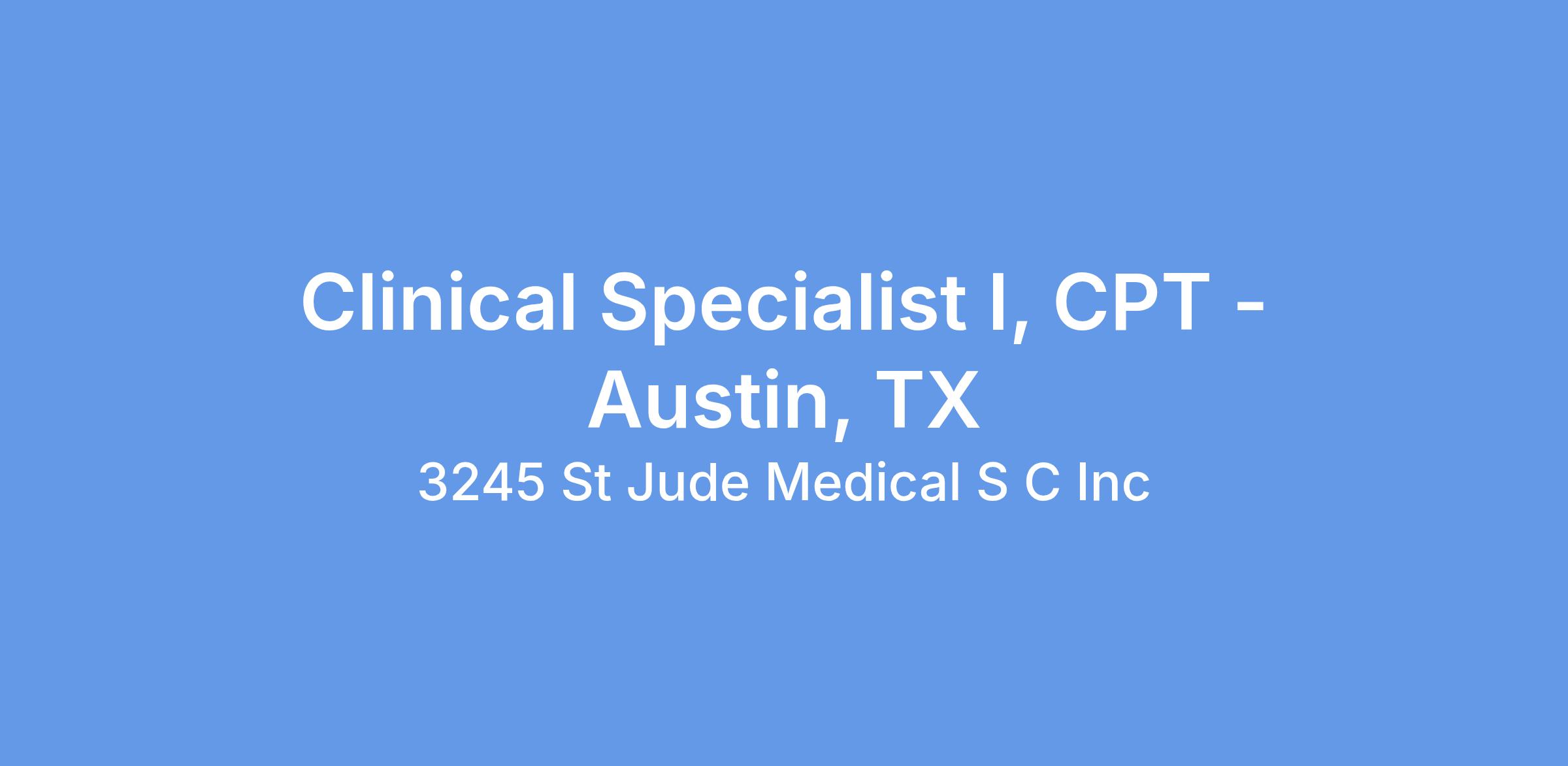 Clinical Specialist I, CPT - Austin, TX