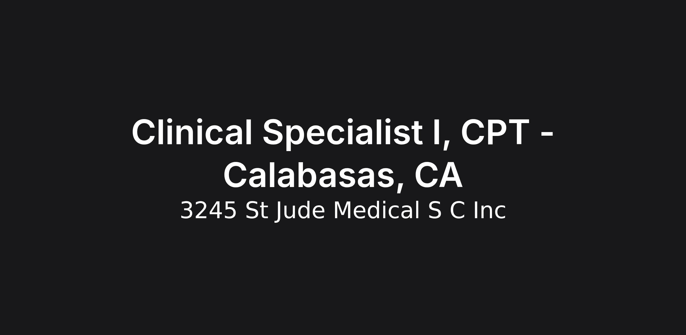 Clinical Specialist I, CPT - Calabasas, CA