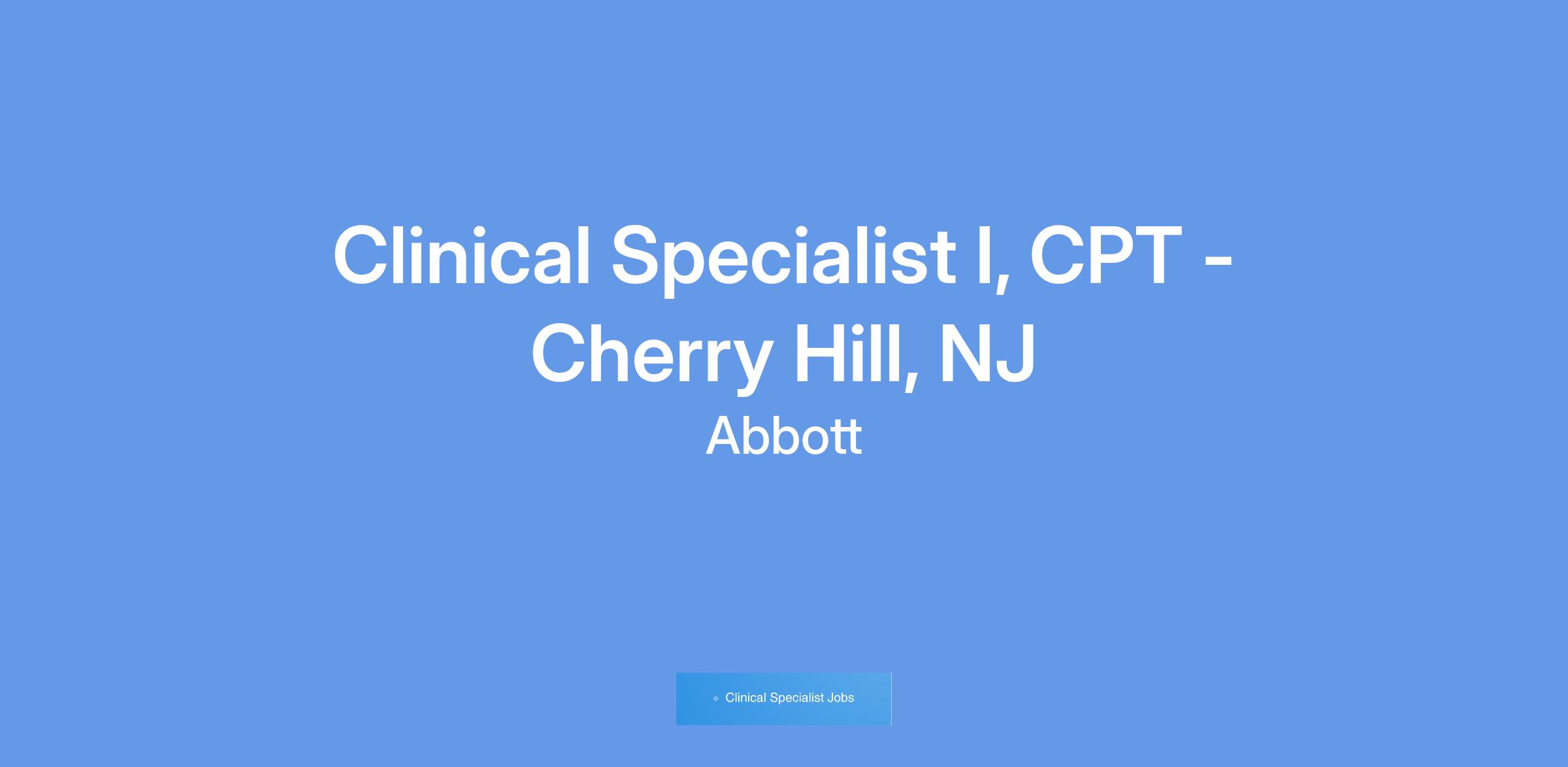 Clinical Specialist I, CPT - Cherry Hill, NJ