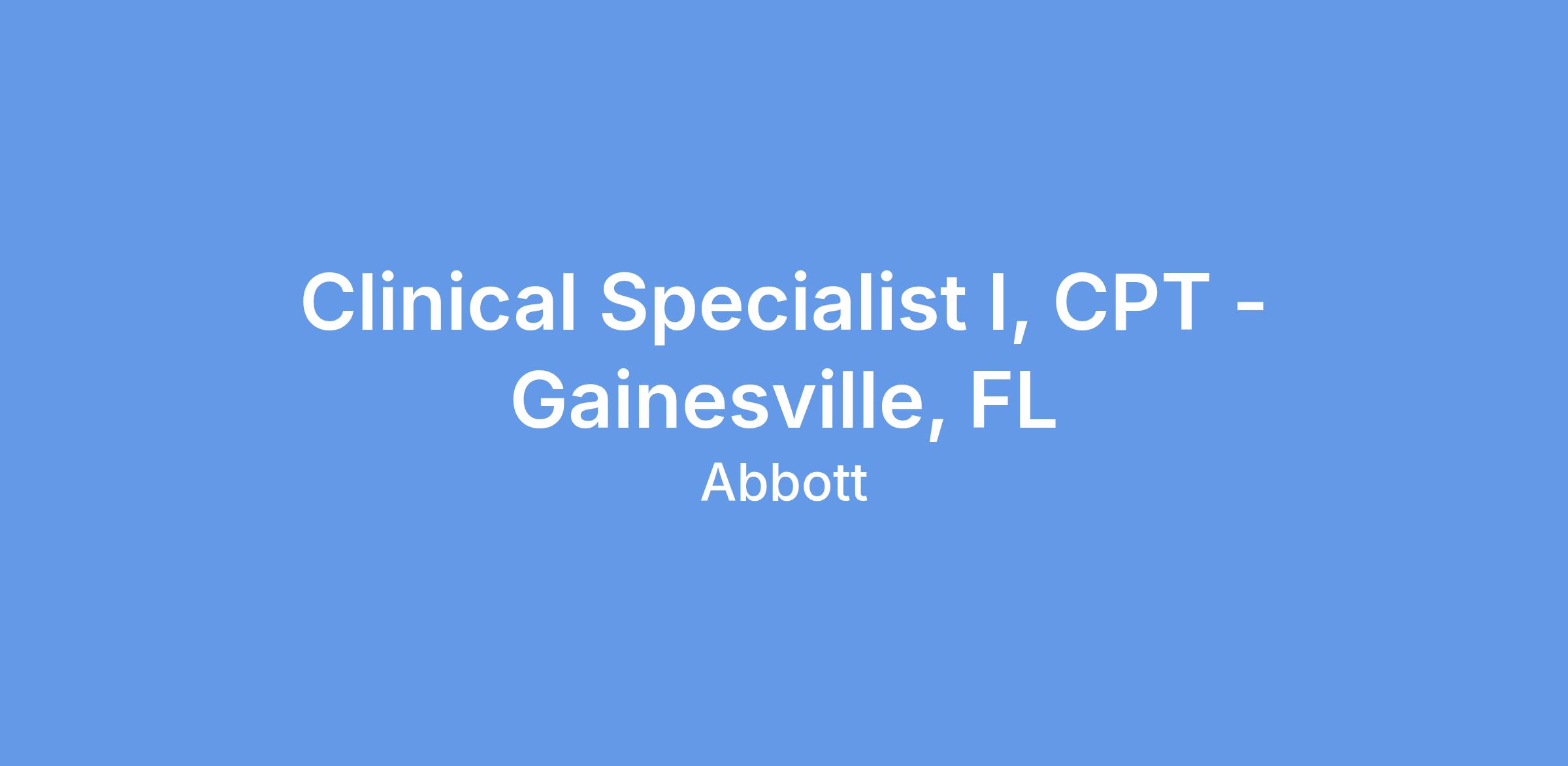 Clinical Specialist I, CPT - Gainesville, FL