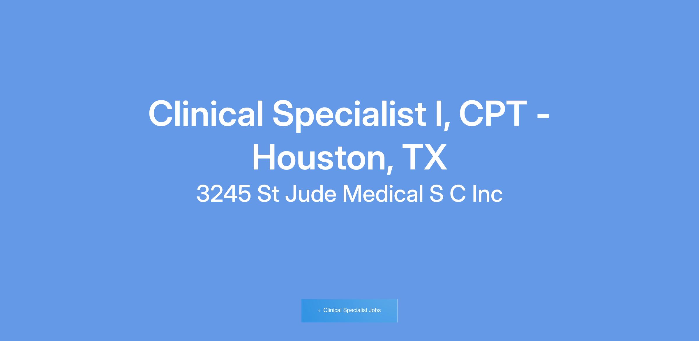 Clinical Specialist I, CPT - Houston, TX