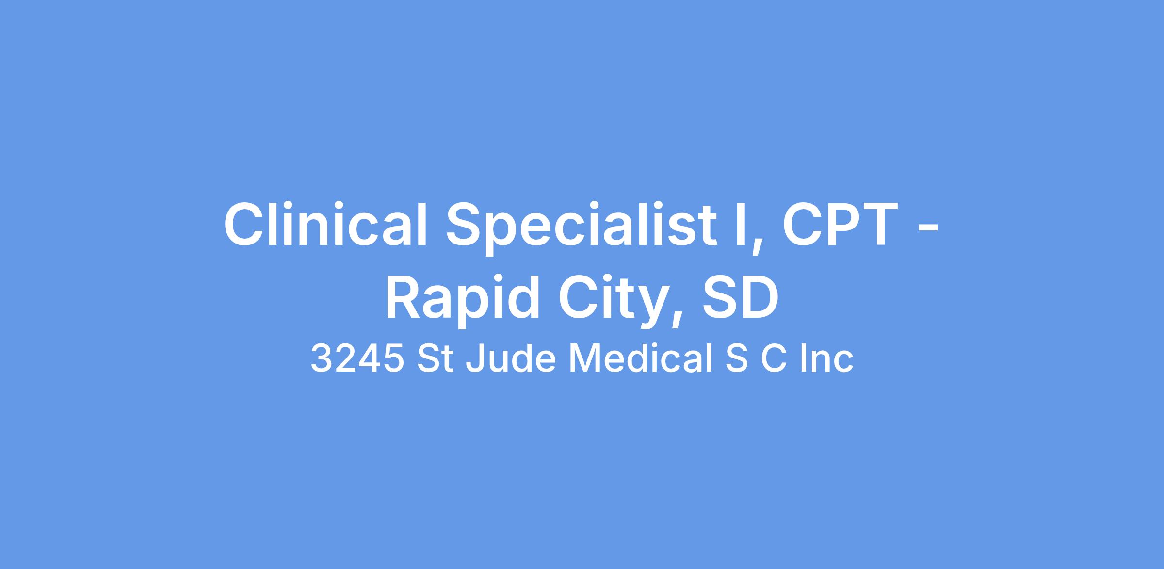 Clinical Specialist I, CPT - Rapid City, SD