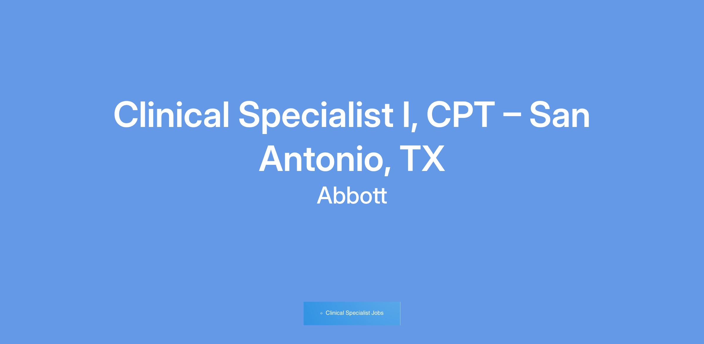 Our team is actively pipelining talented professionals for a forthcoming Clinical Specialist I, CPT in San Antonio. As a member of the clinical support team, is responsible for providing technical clinical expertise and support of the sales process to colleagues, current customers and/or potential customers. Works under general direction with clinical and sales teammates to identify and capitalize on sales opportunities by creating competency, comfort, and expertise with all Abbott Chronic Pain Therapies among physicians, support staff and customers within assigned geography. Performs work that involves a high degree of independence. Exercises independent judgment in planning, organizing, and performing work. Seeks to continually improve territory efficiency.