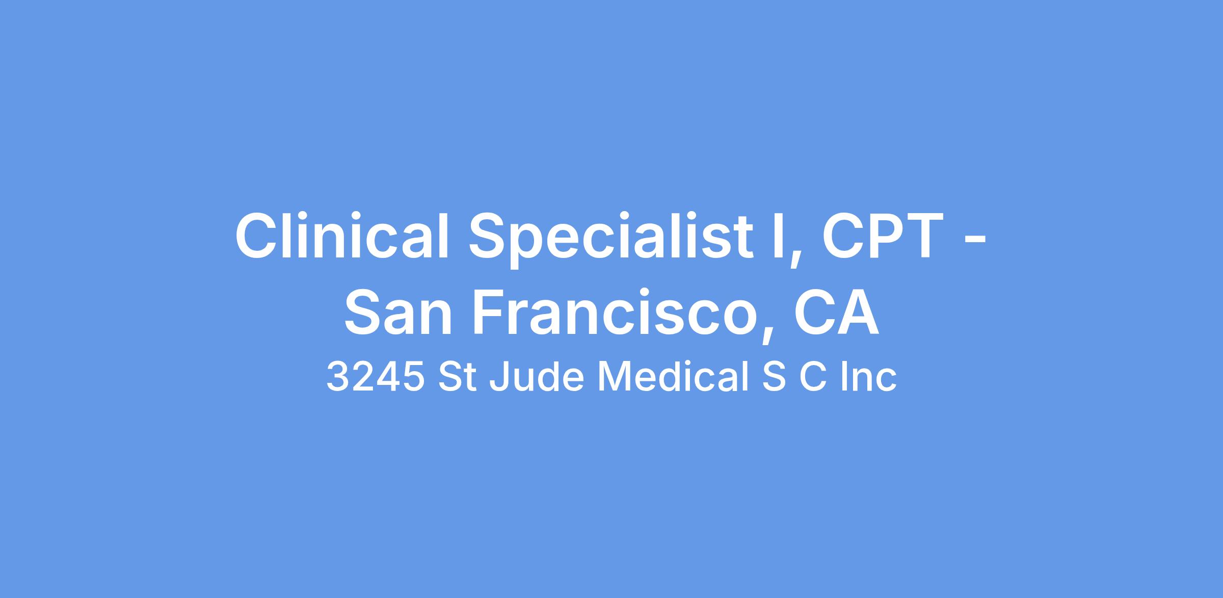 Our team is actively recruiting for a Clinical Specialist I, CPT in San Francisco, CA. As a member of the clinical support team, is responsible for providing technical clinical expertise and support of the sales process to colleagues, current customers and/or potential customers. Works under general direction with clinical and sales teammates to identify and capitalize on sales opportunities by creating competency, comfort, and expertise with all Abbott Chronic Pain Therapies among physicians, support staff and customers within assigned geography. Performs work that involves a high degree of independence. Exercises independent judgment in planning, organizing, and performing work. Seeks to continually improve territory efficiency.