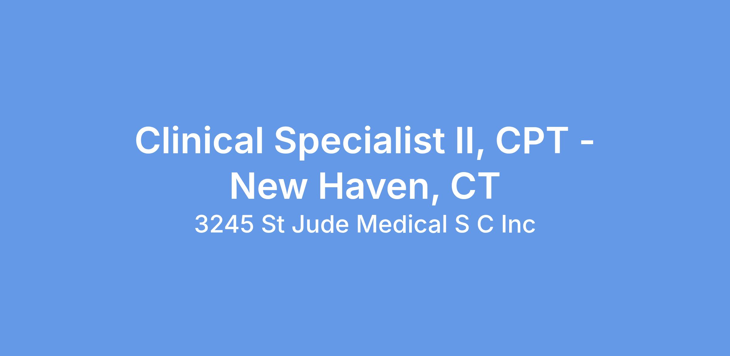 Our team is actively recruiting for a Clinical Specialist II, CPT in New Haven, CT. As a member of the clinical support team, is responsible for providing technical clinical expertise and support of the sales process to colleagues, current customers and/or potential customers. Works under general direction with clinical and sales teammates to identify and capitalize on sales opportunities by creating competency, comfort, and expertise with all Abbott Chronic Pain Therapies among physicians, support staff and customers within assigned geography. Performs work that involves a high degree of independence. Exercises independent judgment in planning, organizing, and performing work. Seeks to continually improve territory efficiency.