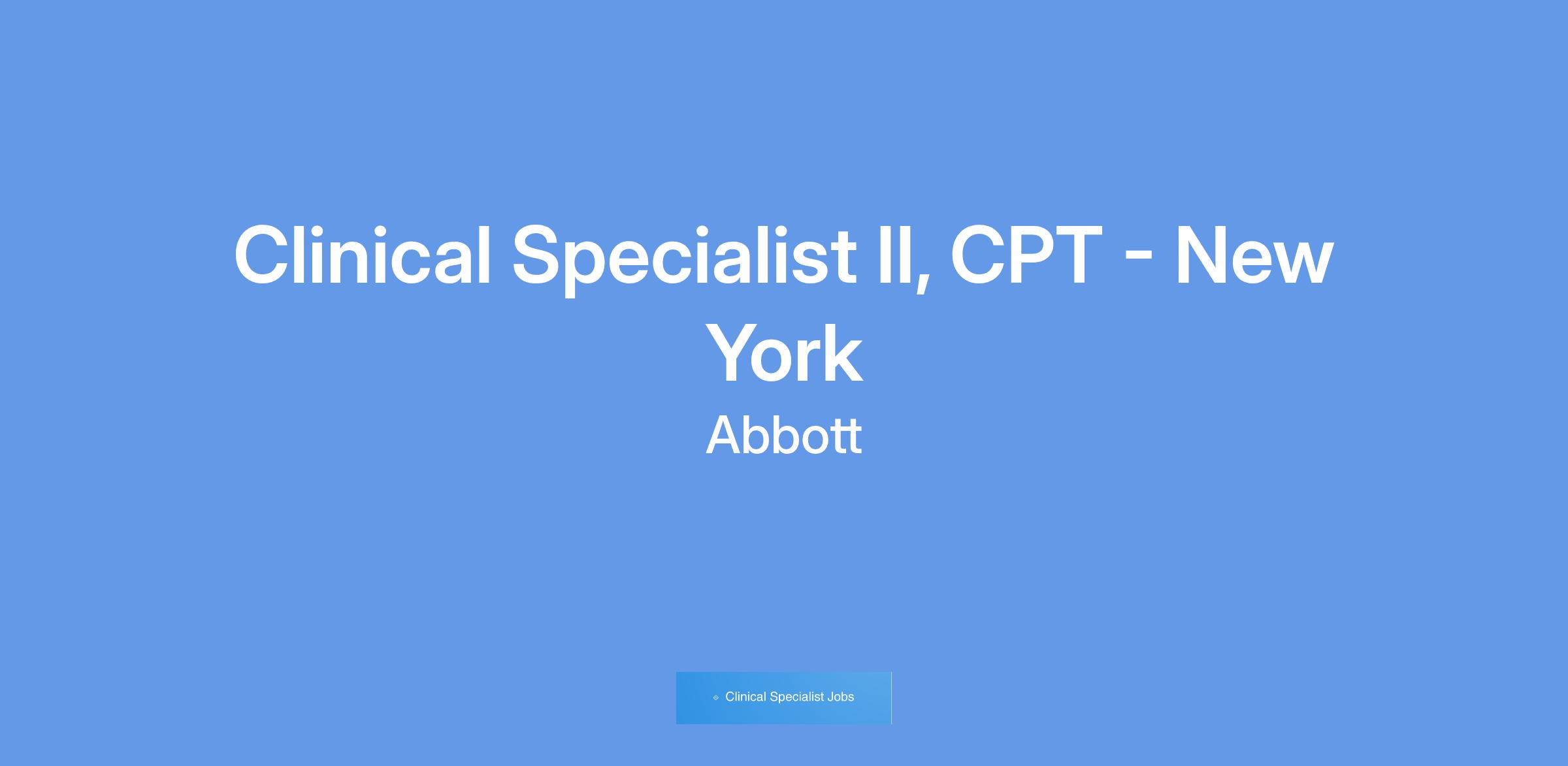 Our team is actively recruiting for a Clinical Specialist II, CPT in New York. As a member of the clinical support team, is responsible for providing technical clinical expertise and support of the sales process to colleagues, current customers and/or potential customers. Works under general direction with clinical and sales teammates to identify and capitalize on sales opportunities by creating competency, comfort, and expertise with all Abbott Chronic Pain Therapies among physicians, support staff and customers within assigned geography. Performs work that involves a high degree of independence. Exercises independent judgment in planning, organizing, and performing work. Seeks to continually improve territory efficiency.