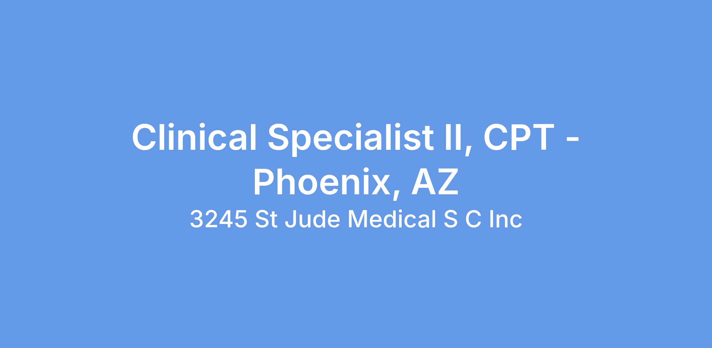 Our team is actively recruiting for a Clinical Specialist II, CPT in Phoenix, AZ. As a member of the clinical support team, is responsible for providing technical clinical expertise and support of the sales process to colleagues, current customers and/or potential customers. Works under general direction with clinical and sales teammates to identify and capitalize on sales opportunities by creating competency, comfort, and expertise with all Abbott Chronic Pain Therapies among physicians, support staff and customers within assigned geography. Performs work that involves a high degree of independence. Exercises independent judgment in planning, organizing, and performing work. Seeks to continually improve territory efficiency.