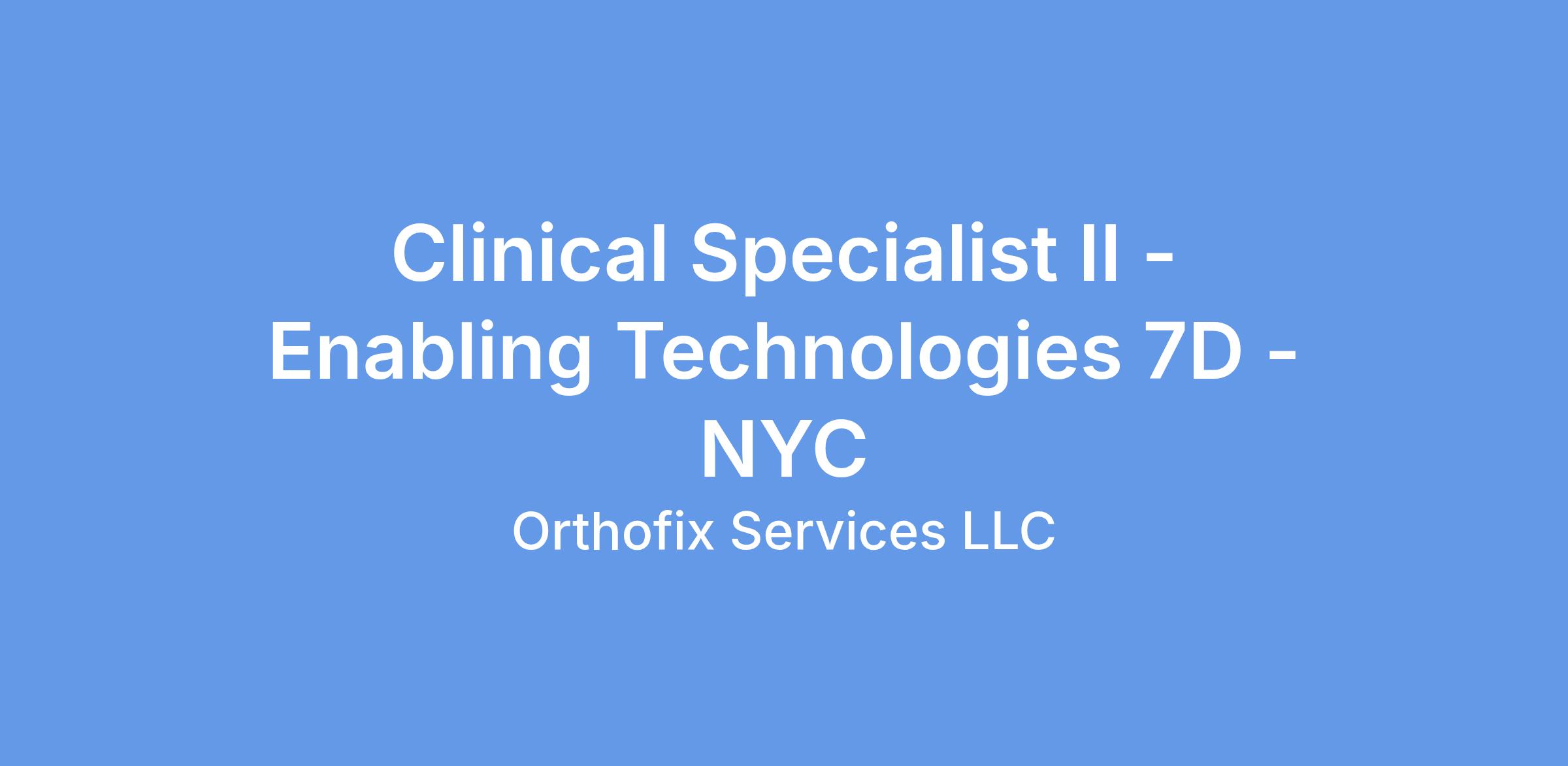Clinical Specialist II - Enabling Technologies 7D - NYC