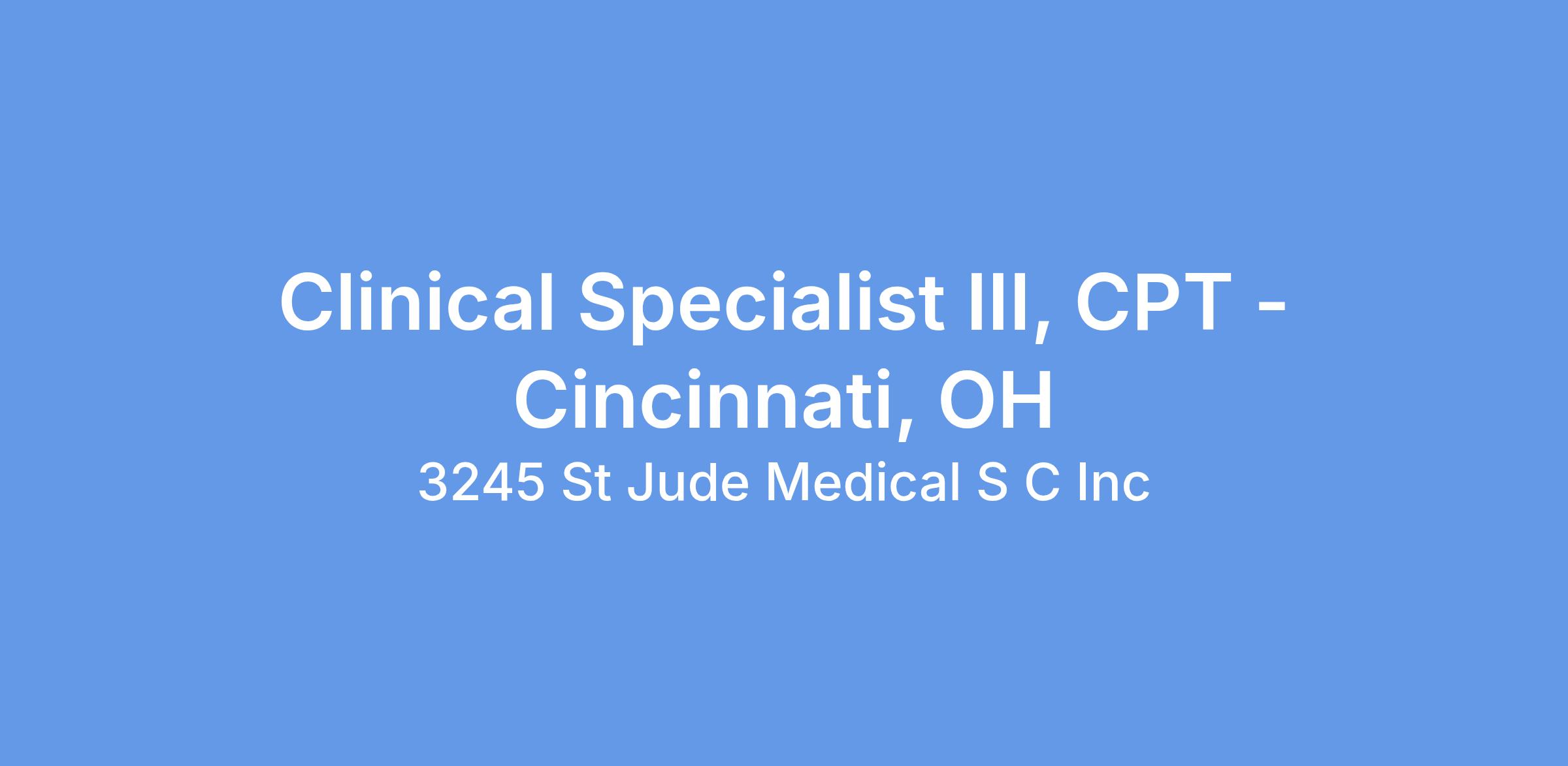 Clinical Specialist III, CPT - Cincinnati, OH