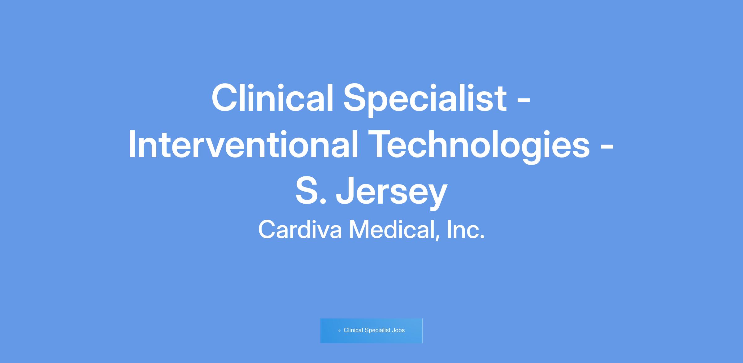 Clinical Specialist - Interventional Technologies - S. Jersey