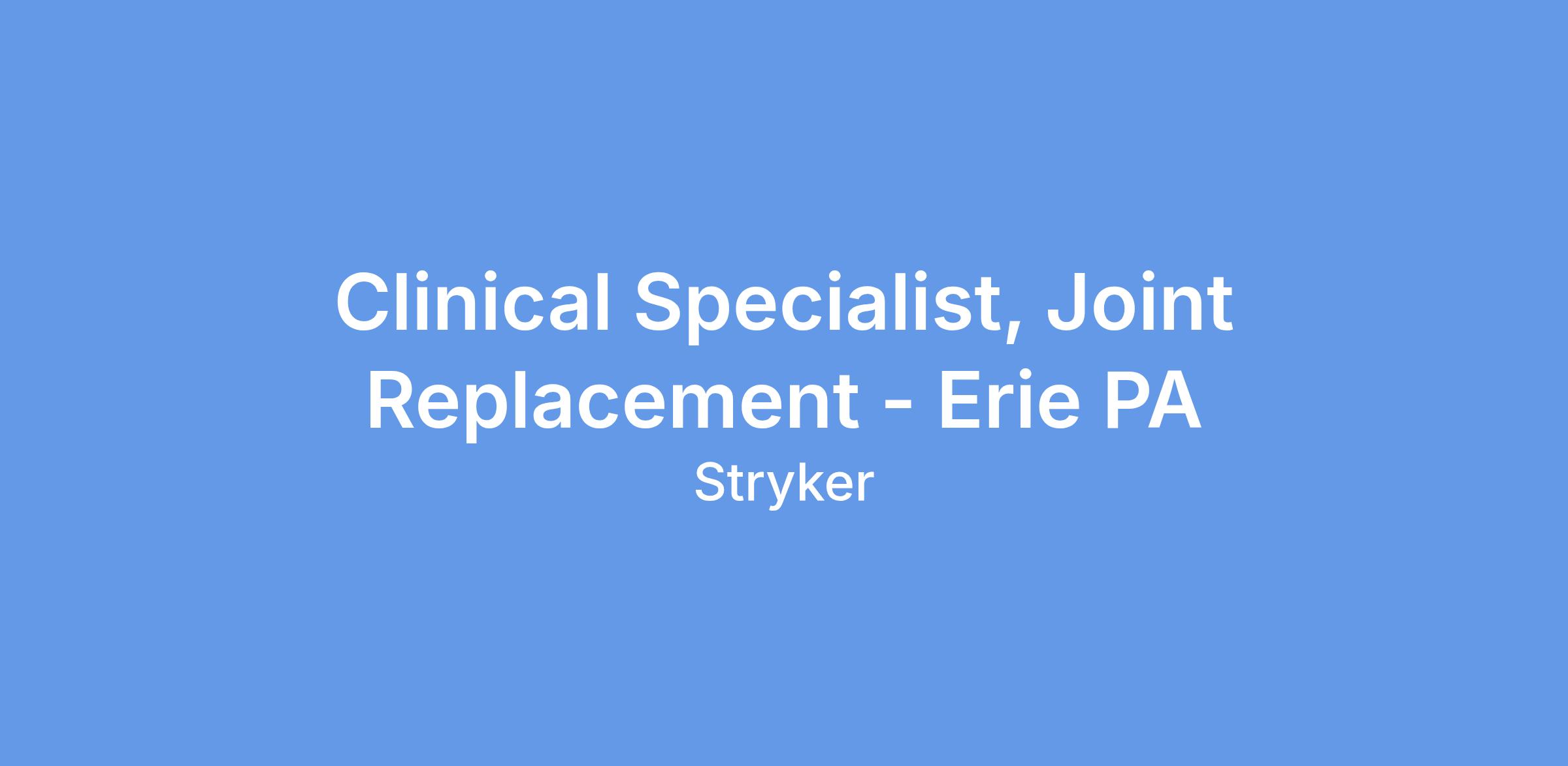 Clinical Specialist, Joint Replacement - Erie PA
