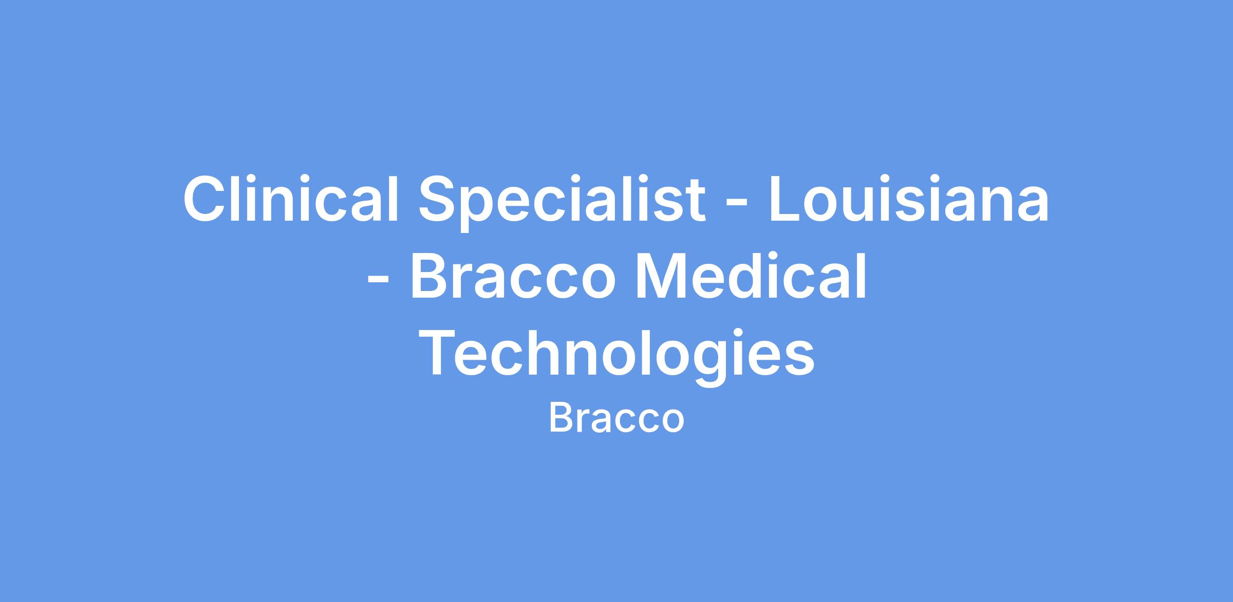 Bracco Medical Technologies is an Affirmative Action/Equal Opportunity Employer. Bracco Medical Technologies desires priority referrals of protected veterans for all openings.