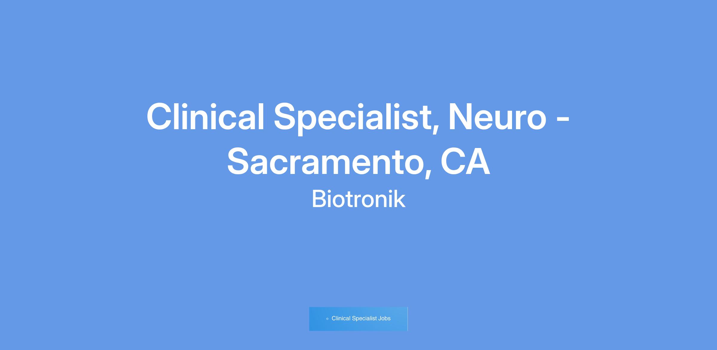 BIOTRONIK Neuro is looking to add Clinical Specialist to our Neuromodulation Segment in Sacramento, California. As a member of the clinical support team, you'll be responsible for providing technical clinical expertise and support of the sales process to colleagues, current customers and/or potential customers. Works under general direction with clinical and sales teammates to identify and capitalize on sales opportunities by creating competency, comfort and expertise with all Biotronik NRO among physicians, support staff and customers within assigned geography. Performs work that involves a high degree of independence. Exercises independent judgment in planning, organizing, and performing work. Seeks to continually improve territory efficiency.