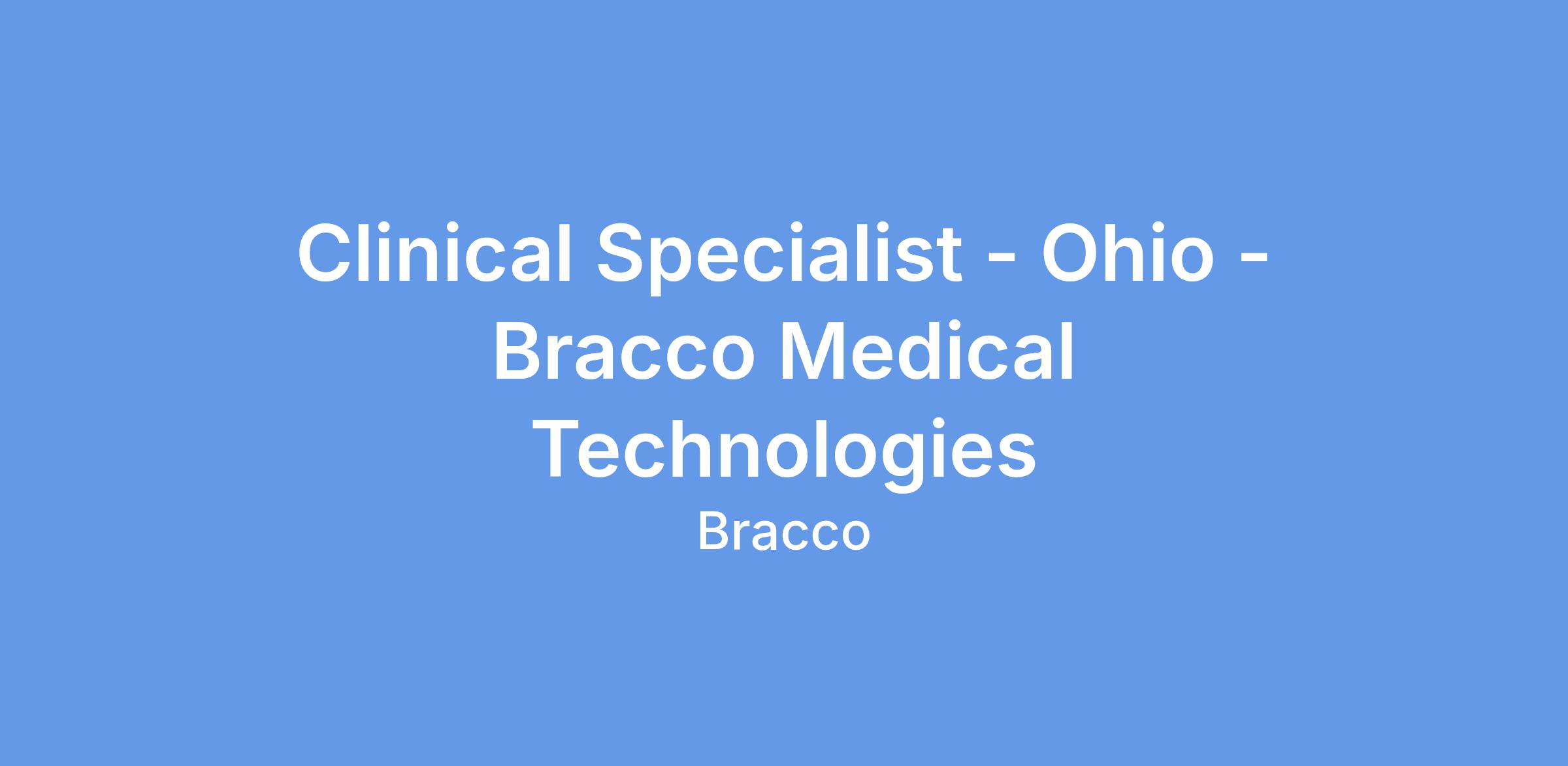 Bracco Medical Technologies is an Affirmative Action/Equal Opportunity Employer. Bracco Medical Technologies desires priority referrals of protected veterans for all openings.