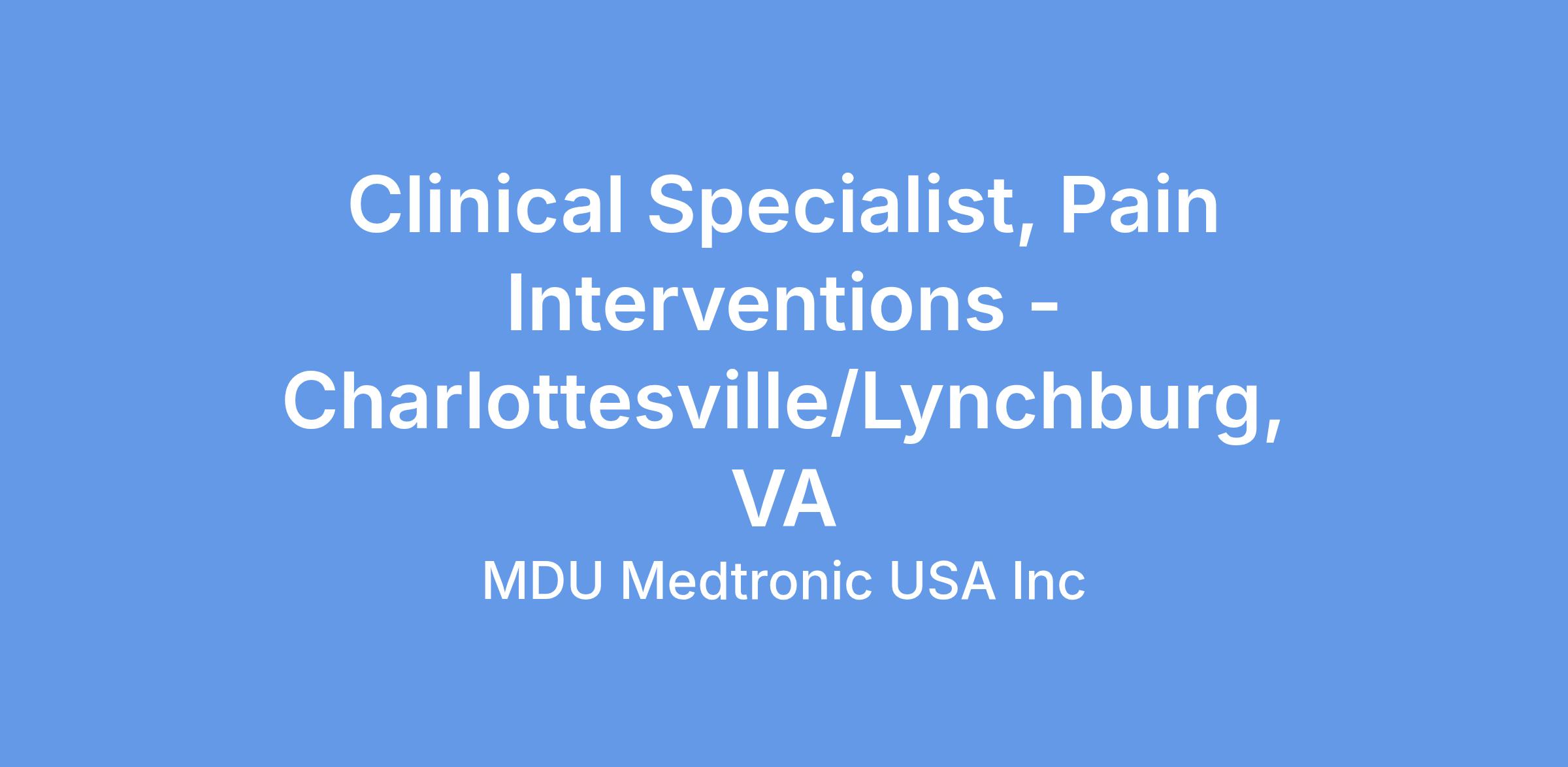 At Medtronic, the Clinical Specialist, supports the Neuromodulation Pain and Target Drug Delivery as well as Interventional Therapies (in some districts) in the areas of surgical coverage, follow-up support, troubleshooting, customer service and education. This person will be engaged in basic market development activities depending upon the needs of the assigned territory and district.