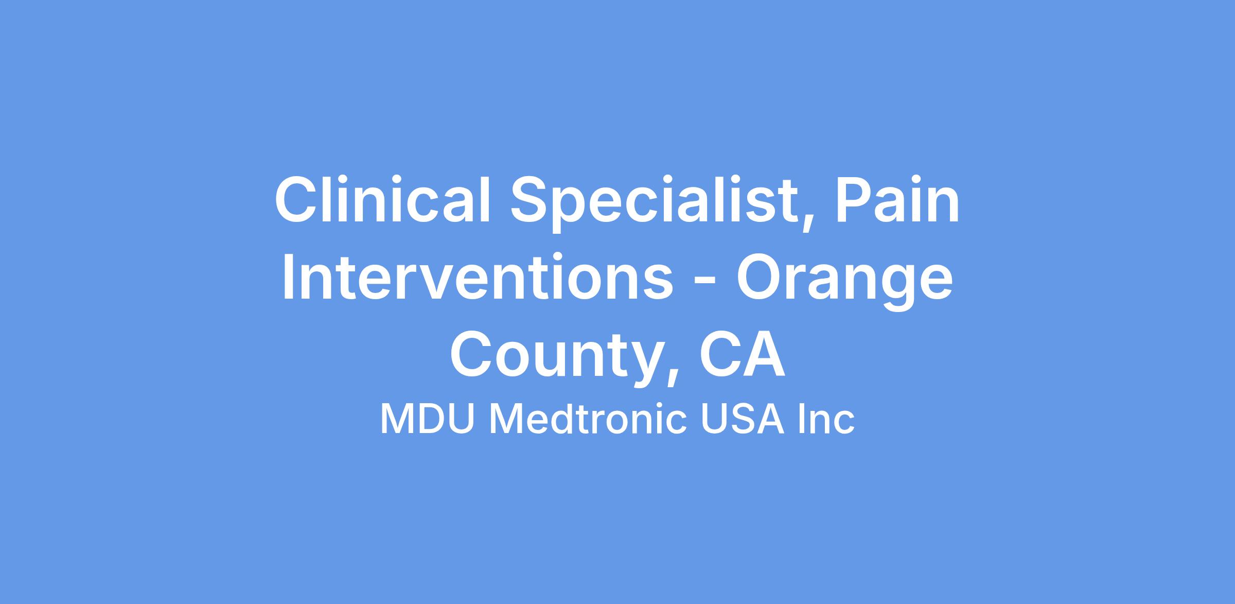 At Medtronic, the Clinical Specialist, supports the Neuromodulation Pain and Target Drug Delivery Therapies in the areas of surgical coverage, follow-up support, troubleshooting, customer service and education. This person will be engaged in basic market development activities depending upon the needs of the assigned territory and district.