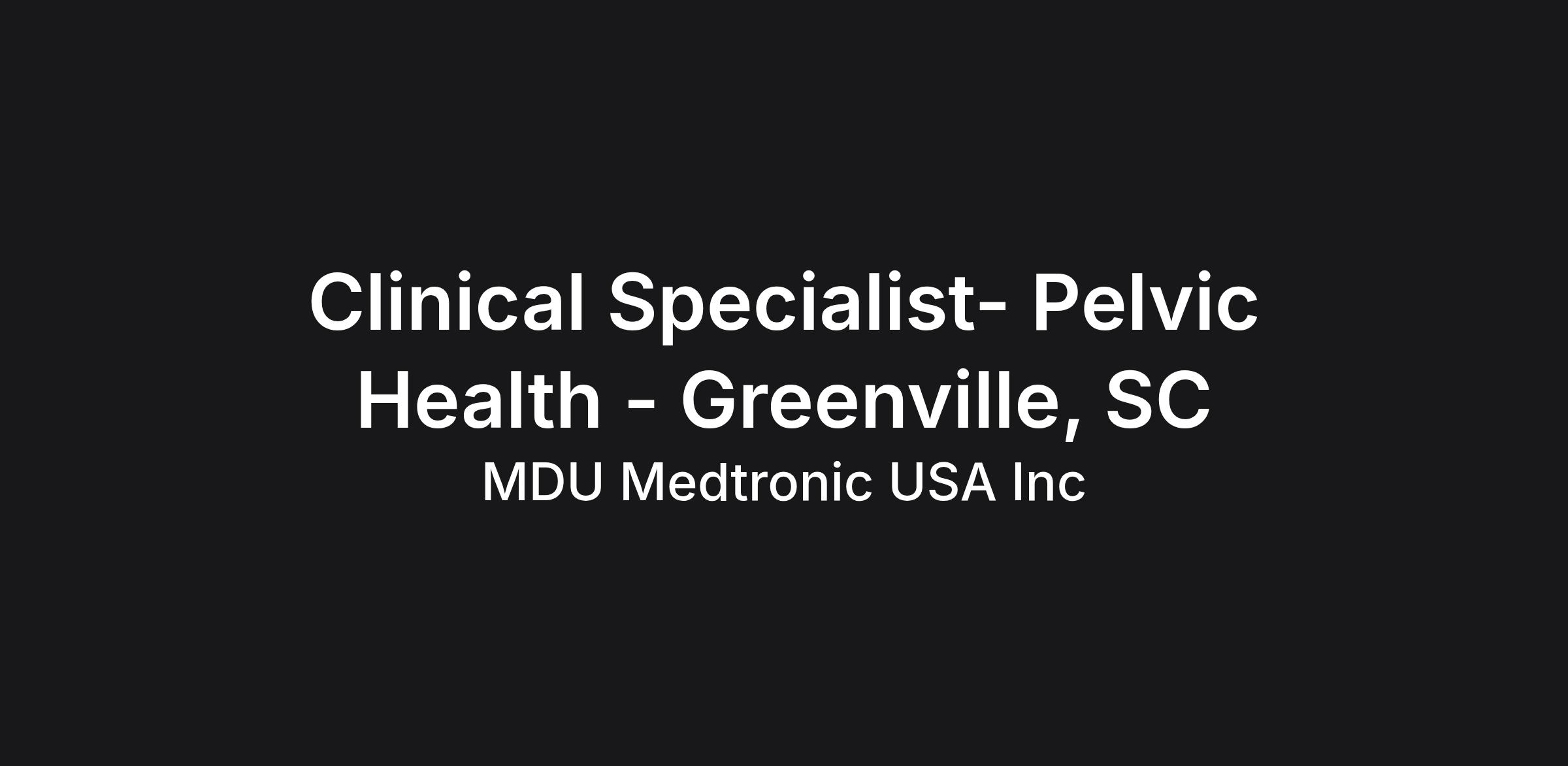 At Medtronic, the Clinical Specialist supports the Pelvic Health groups in the areas of surgical coverage, follow-up, support, troubleshooting, customer service and education within a territory. In certain instances, this role may be engaged in basic market development activities depending upon the needs of the assigned territory.