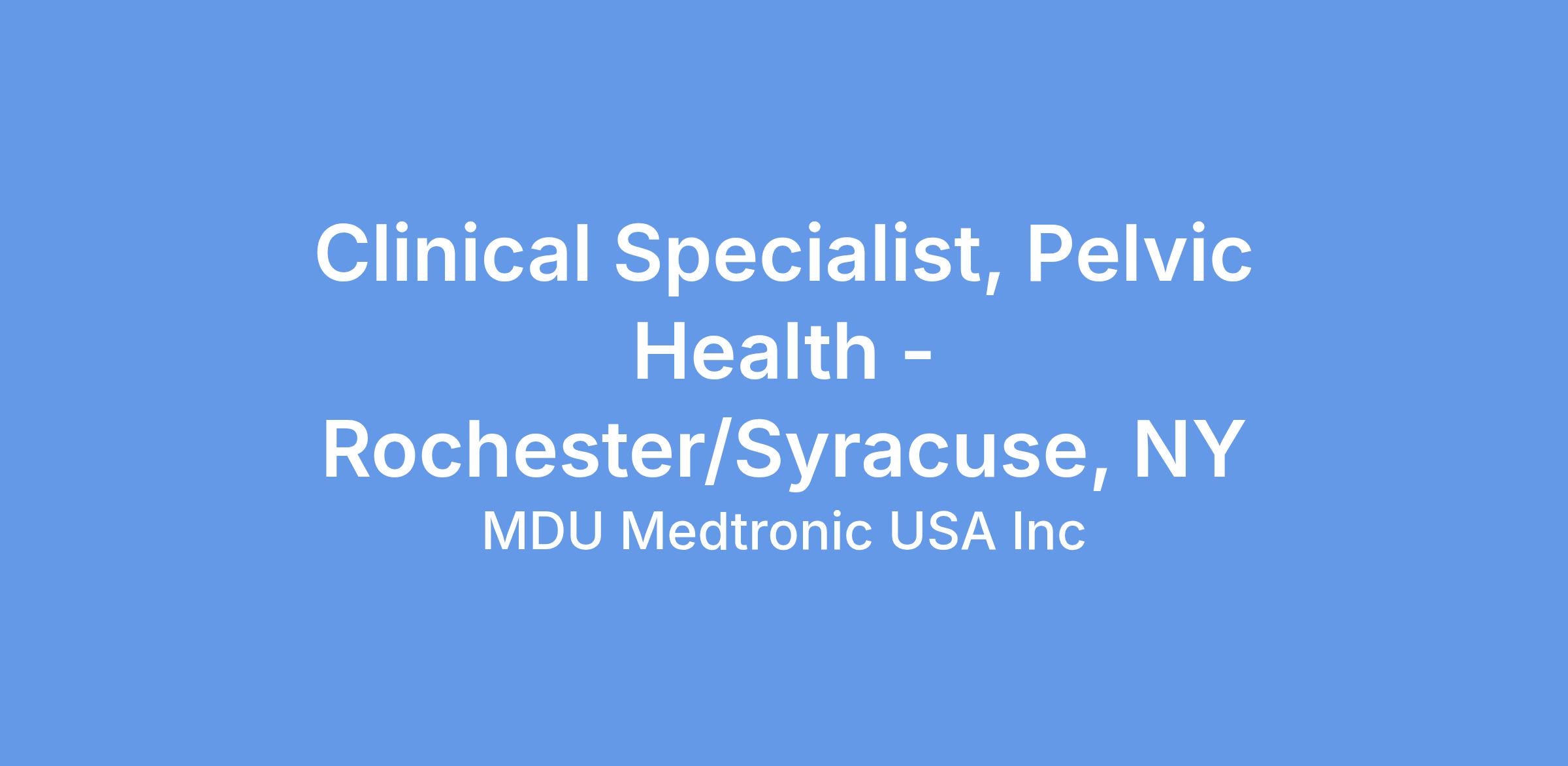 At Medtronic, the Clinical Specialist supports the Pelvic Health Therapy groups in the areas of surgical coverage, follow-up, support, troubleshooting, customer service and education within a territory. In certain instances, this role may be engaged in basic market development activities depending upon the needs of the assigned territory.